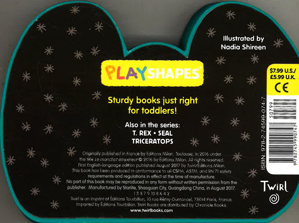 With their brightly painted edges, the PlayShapesTM series of sturdy shaped board books are satisfying and fun to hold. Simple language-with just the right amount of real information-and boisterous illustrations introduce little ones to the irresistible emperor penguin!