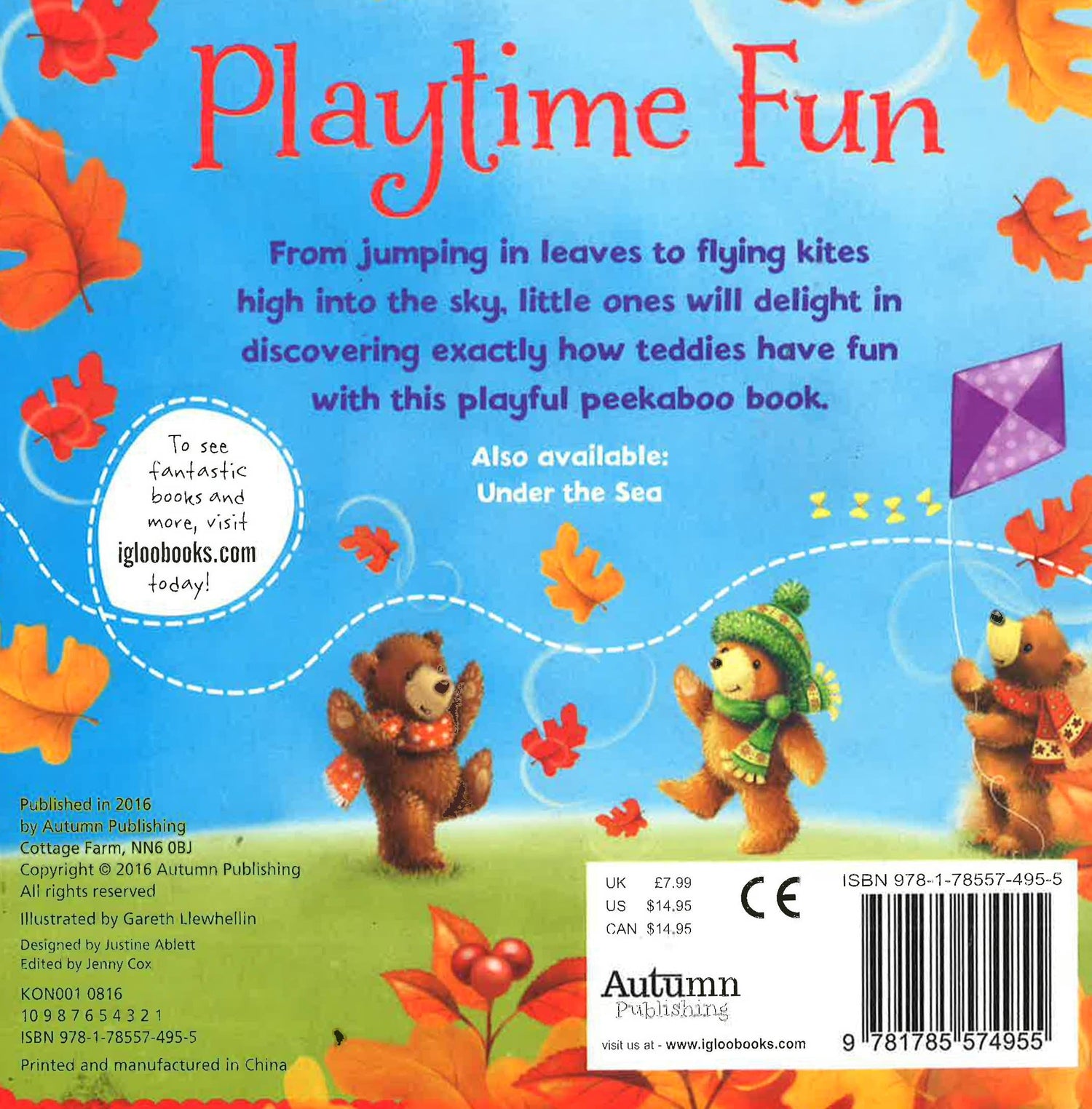 From jumping in leaves to flying kites high into the sky, little ones will delight in discovering exactly how teddies have fun with this playful peekaboo book.