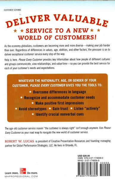 Please Every Customer provides key information about how people of different cultures and groups communicate, view relationships, and value time-so you can provide the best service for each of your customer's needs and expectations.