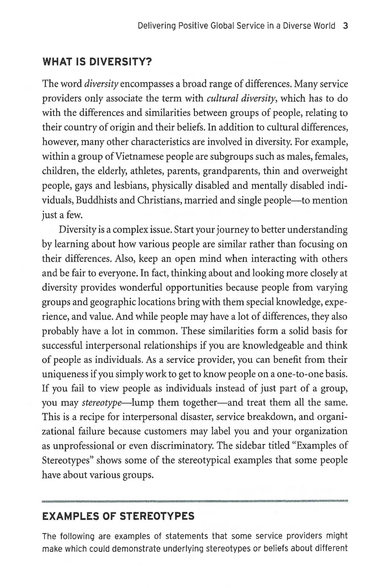Deliver Valuable Service to a New World of CustomersAs the economy globalizes, customers are becoming more and more diverse making your job harder than ever. Regardless of differences in values, age, abilities, and other factors, the pressure is on to deliver exceptional customer service every step of the way. Help is here.