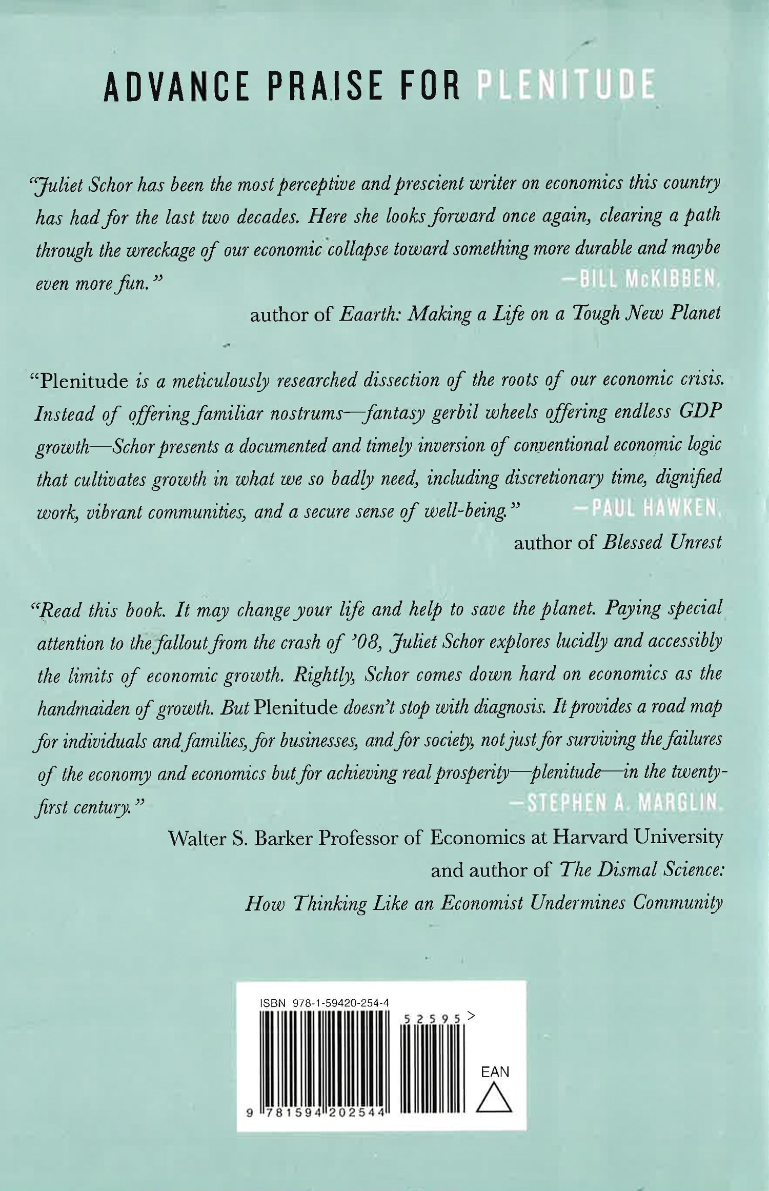 Based on recent developments in economic theory, social analysis, and ecological design as well as evidence from the cutting-edge people and places putting these ideas into practice, Plenitude is a road map for the next two decades. In encouraging us to value our gifts- nature, community, intelligence, and time-Schor offers the opportunity to participate in creating a world of wealth and well-being.