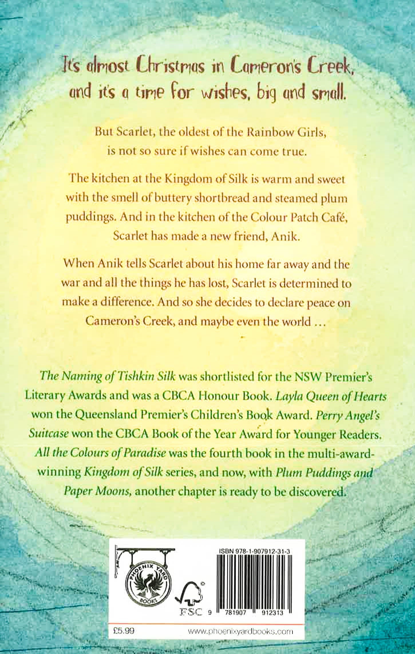 The kitchen at the Kingdom of Silk is warm and sweet with the smell of buttery shortbread and steamed plum puddings. And in the kitchen of the Colour Patch Café, Scarlet Silk, the eldest of the Rainbow Girls, has made a new friend, Anik.When Anik tells Scarlet about the war in his home far away and of all the things he has lost, Scarlet is determined to make a difference. And so she decides to declare peace on Cameron's Creek, and maybe even the world…