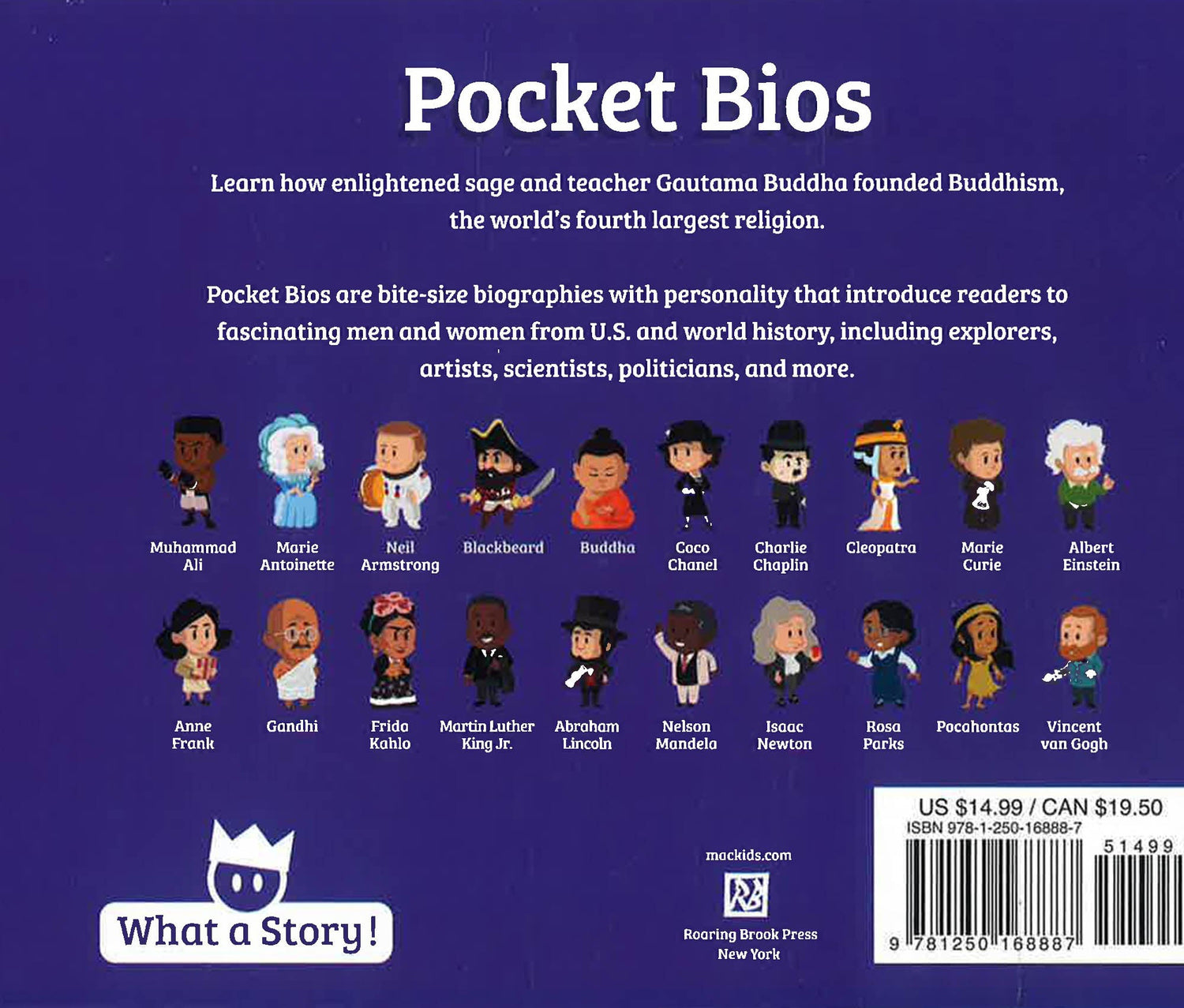 A colorfully illustrated, pocket-size picture book biography of the Buddha. Gautama Buddha lived and taught in ancient India between the 6th and 4th centuries B.C.E. It is said that he was a prince before he renounced his former life in order to search for the cycle of rebirth and an end to suffering. He founded the religion of Buddhism, which has hundreds of millions of followers to this day and is the world's fourth largest religion. Pocket Bios are full of personality, introducing readers to fascinating figures from history with simple storytelling and cheerful illustrations. Titles include men and women from history, exploration, the sciences, the arts, the ancient world, and more.