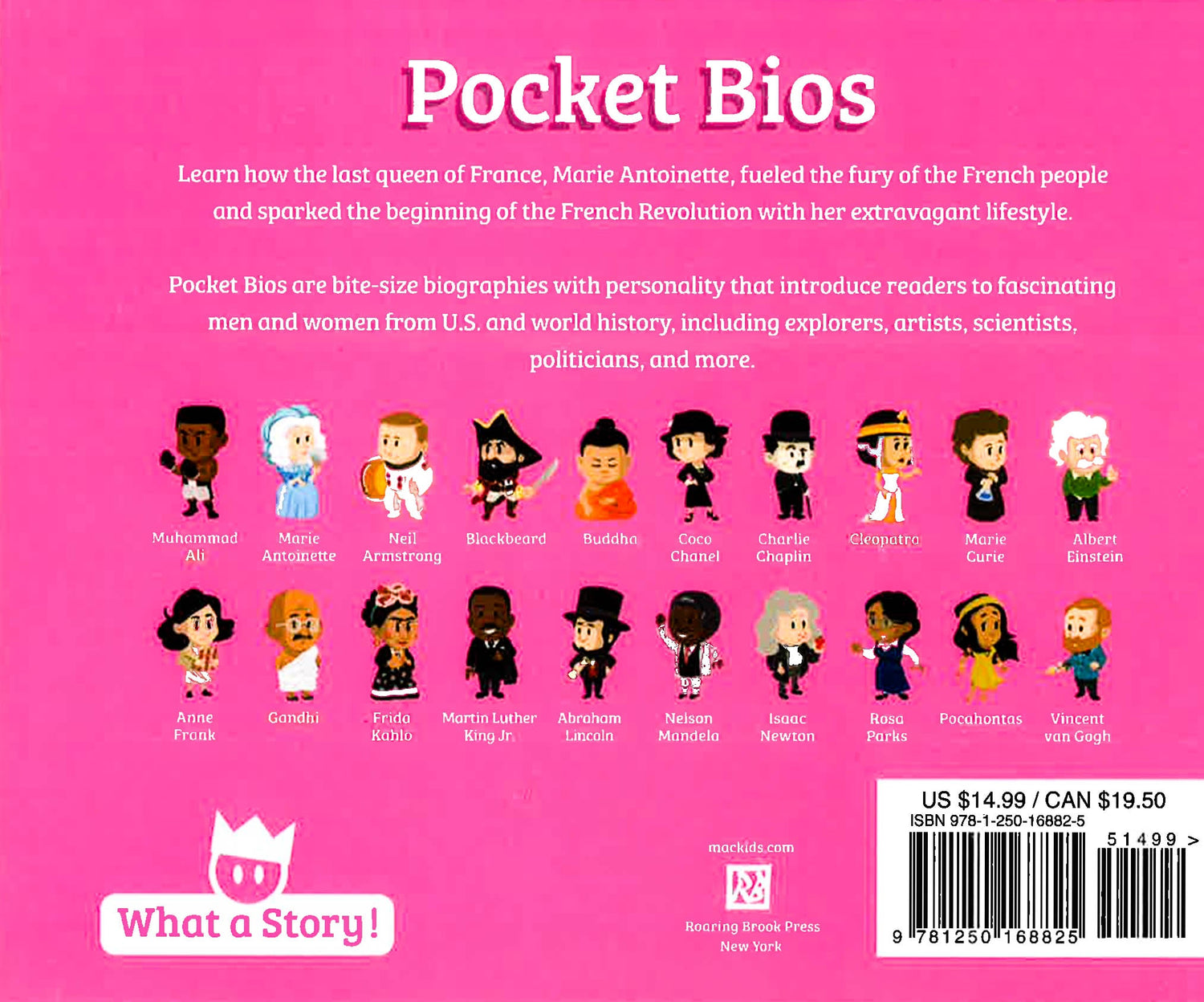Marie Antoinette was born Archduchess of Austria and married Louis-Auguste, future King Louis XVI, when she was only 14 years old. At the age of 19, she became the last queen of France before the French Revolution in 1789. She was notorious for lavish spending, parties and gambling. Famously thought to have said Let them eat cake! Marie's actions fueled the fury that brought about the French Revolution, and she remains an intriguing figure to this day. Pocket Bios are full of personality, introducing readers to fascinating figures from history with simple storytelling and cheerful illustrations. Titles include men and women from history, exploration, the sciences, the arts, the ancient world, and more.