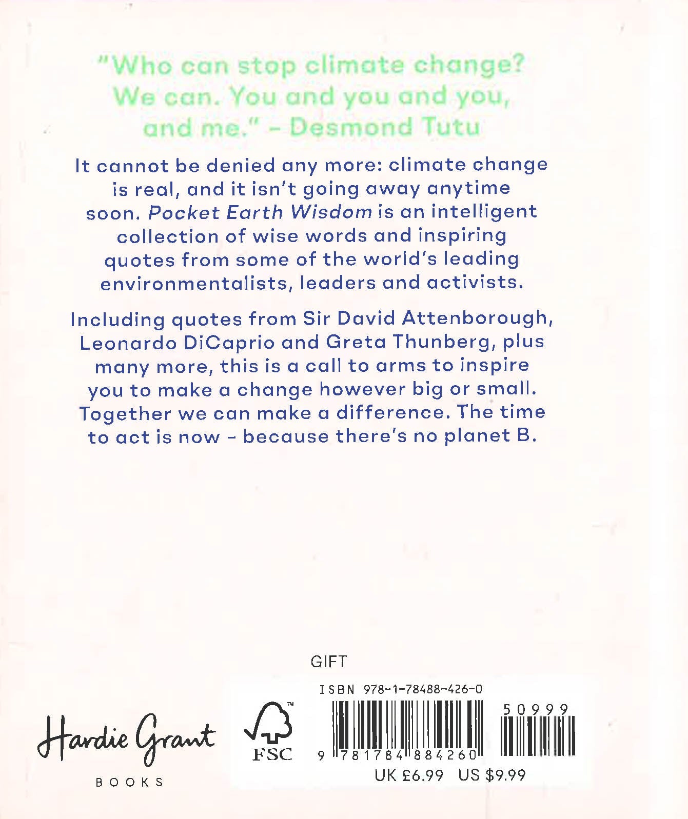 Let Pocket Earth Wisdom inspire and teach you how you can make a change however small. Now more than ever it's imperative that we take a stand and speak out. Thankfully activists, celebrities, world leaders and environmentalists have been doing so for many years. Pocket Earth Wisdom is a collection of some of the most impactful and inspiring quotes about planet Earth will be the call to arms you need to step up as there's no planet B. Together we have the power to make a difference.