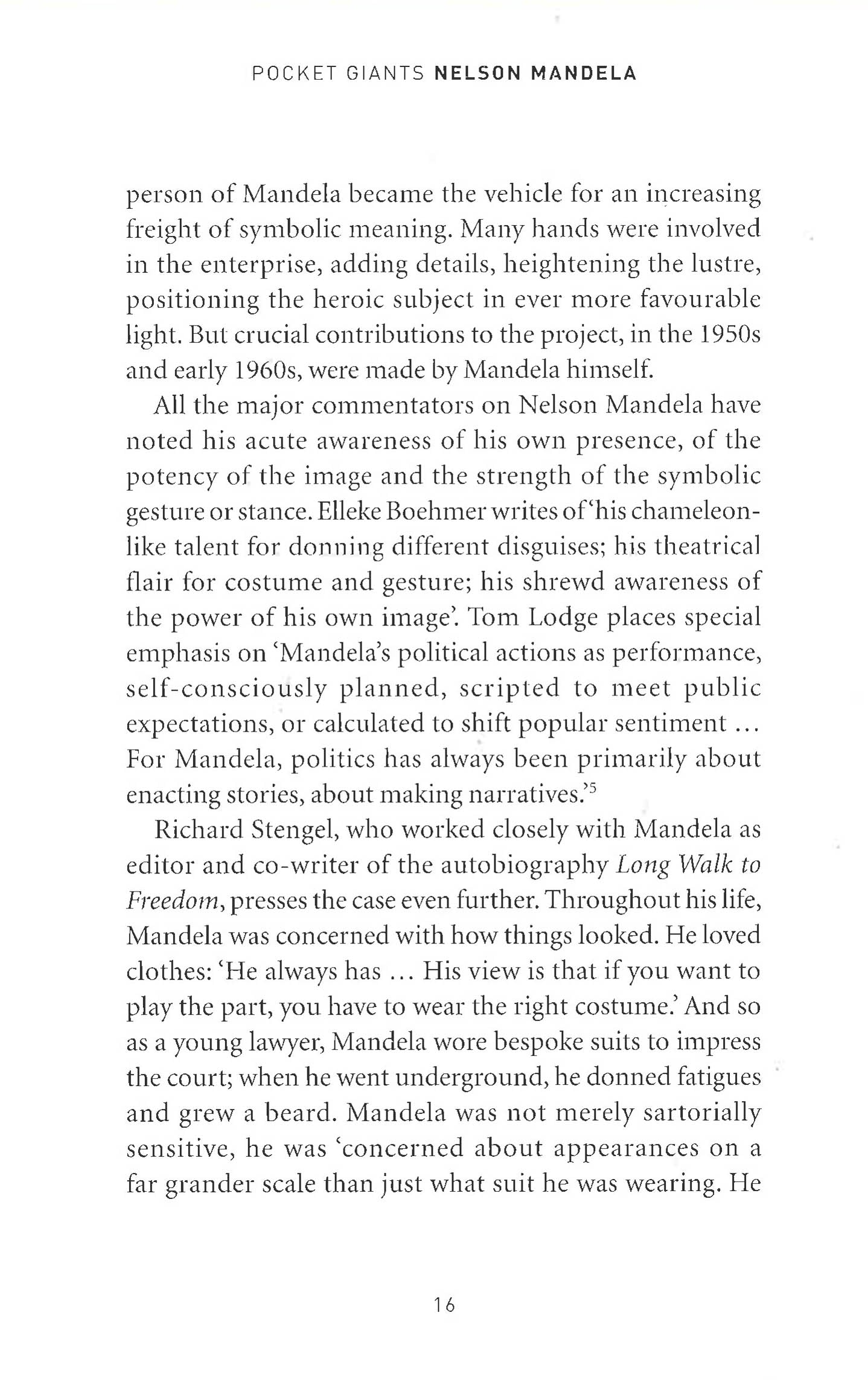 Coming to terms with a dizzying sequence of roles, this biography explores Mandela's various identities - dashing young urbanite, charismatic nationalist politician, underground military commander and Black Pimpernel, tried, convicted, and a political prisoner for 27 years; on his release president of a democratic South Africa - and assesses these independently of his iconic, nigh-mythic status.