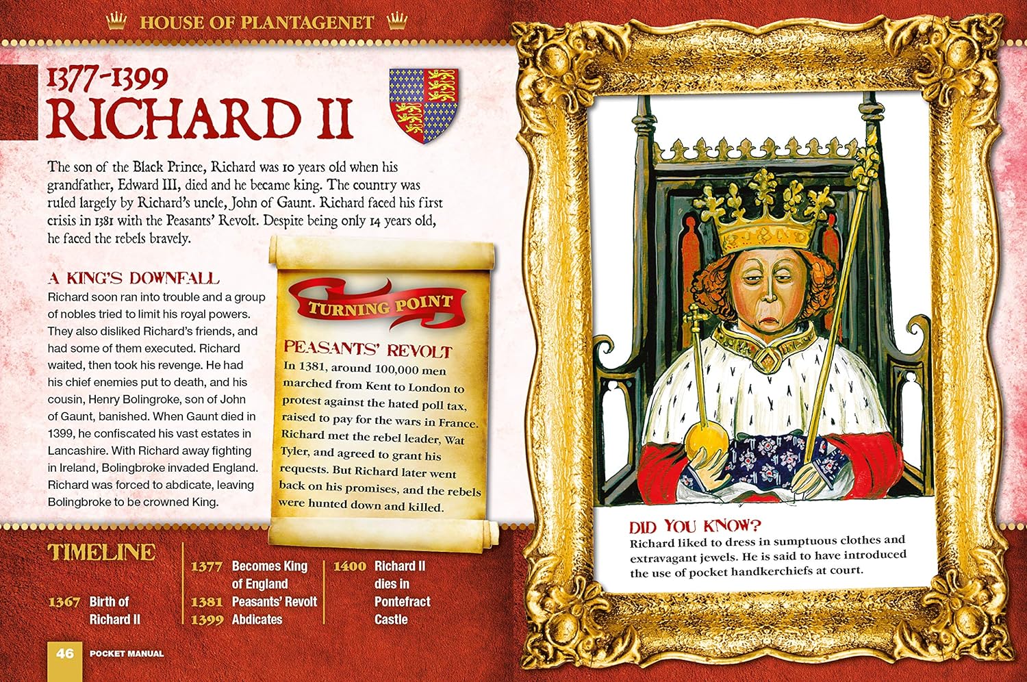 This pocket-sized book covers 1,200 years of British royals, from King Egbert to Queen Elizabeth II. Containing hundreds of fascinating facts and figures of the monarchs and their reigns, the book also covers revolutions, beheadings, scandals, assassinations, marriages, plots, intrigues, imposters, and more marriages.