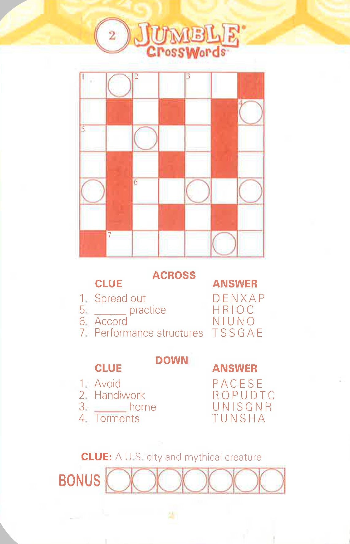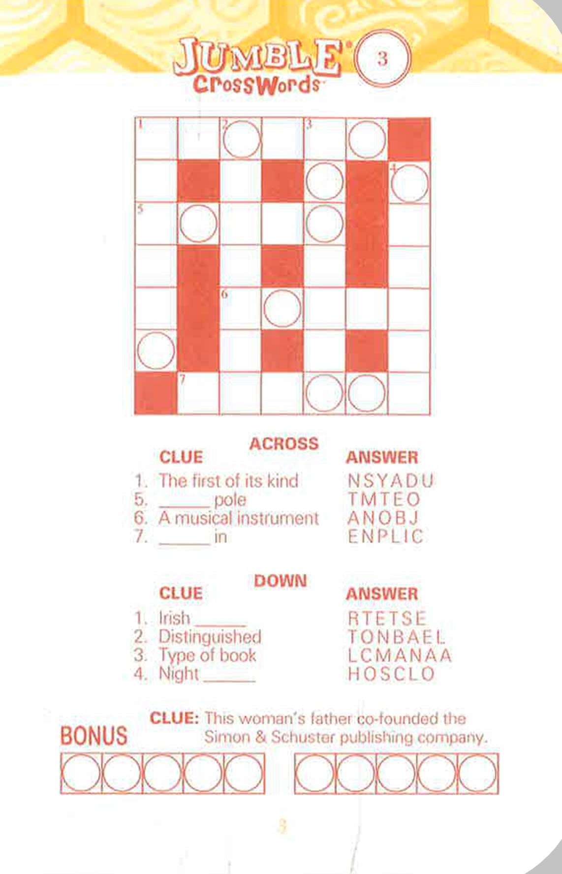 Our 5th collection of this hugely popular and entertaining puzzle. Jumble (R) Crossword (TM) combines the popularity of Jumble (R) with the familiarity of crosswords. Players solve the puzzle using regular crossword clues - the answer is revealed, but jumbled. Once the crossword is complete, the player unscrambles the circled letters to discover the bonus word. This portable package is part of our best-selling series featuring highly stylized, embellished covers and boasting 5 million copies in print.