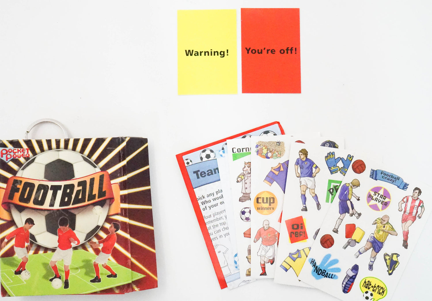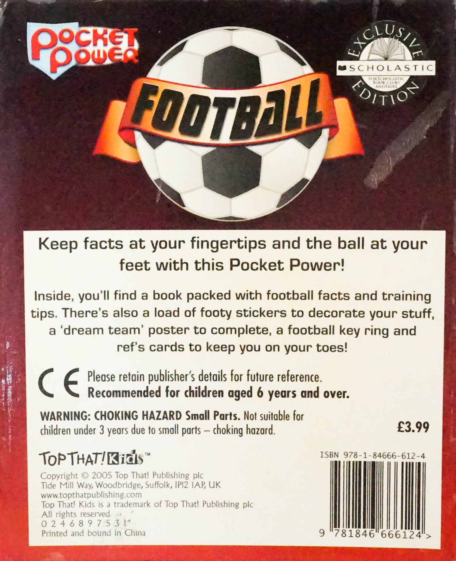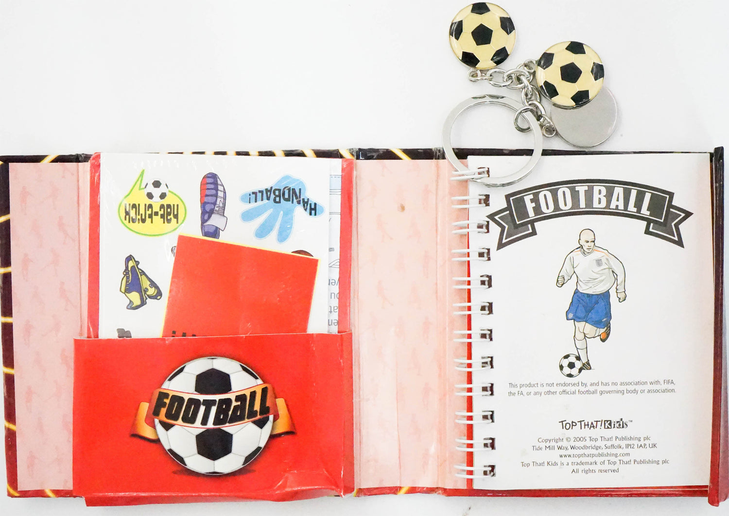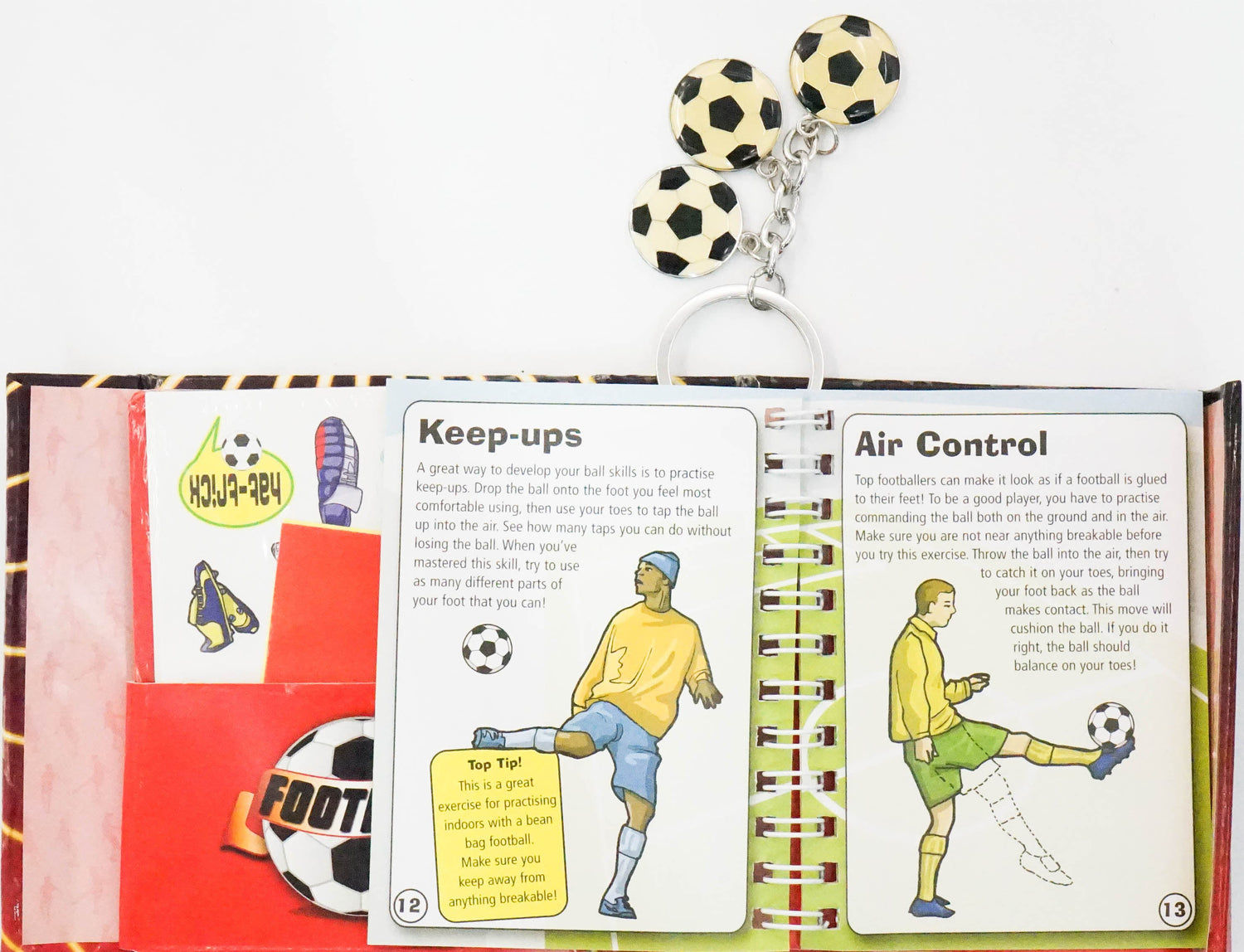 Footie fans! Live your dreams with a pocket guide to perfect play. This handy pocket file is stuffed with footie-themed fun, from soccer stats and action-packed stickers to a fab football keyring! There’s a colourful booklet full of glittering game info, a ‘dream team’ poster to complete, and even some referee cards to keep your players in line. Now you can keep the ball at your toes – and the world at your feet!