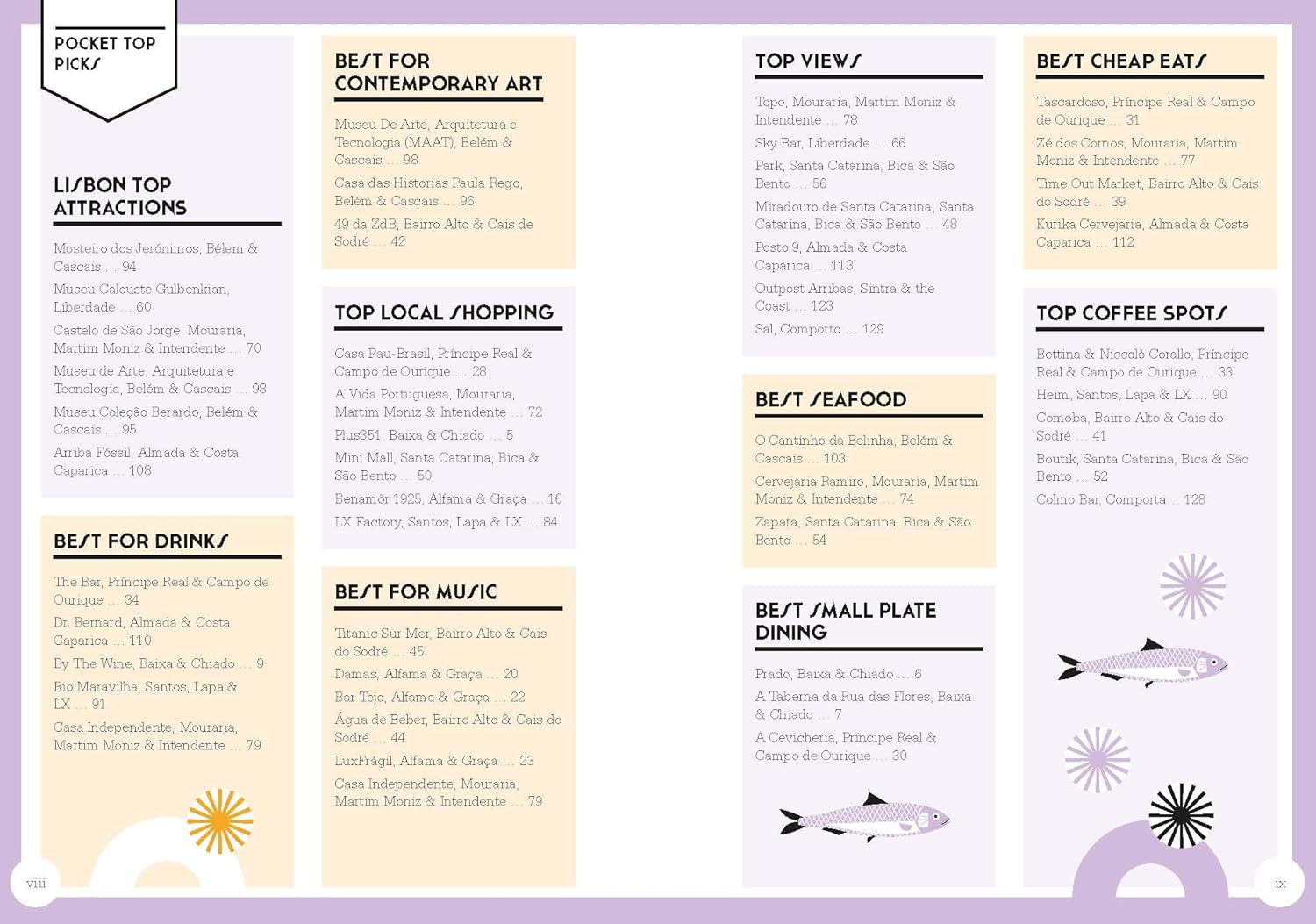 Set over seven hills by the mighty Rio Tejo, Lisbon mixes 17th-century grandeur with an easygoing lifestyle, suburban food and wine venues, and a vibrant contemporary art and music scene. Skip the lines for Portuguese tarts, dodge the Tram 28 crowds and instead step inside this deeply historic and fast-booming city. Sip uma bicas (espresso) and share pataniscas (cod fritters) with the Lisboetas at neighborhood cafes and tascas, wander the pavements past exquisitely tiled facades, and party until dawn in dark fado dens, sun-kissed rooftop bars and pulsing dockside nightclubs. Lisbon Pocket Precincts is your curated guide to the city's best cultural, shopping, eating and drinking experiences, and its most accessible and budget-friendly choices. Each precinct takes in one or more of Lisbon's traditional districts with insider reviews of both outstanding attractions and hidden gems, as well as easy-to-use maps. A selection of field trips also encourages you to venture further afield, to the natural beauty of Sintra and Comporta, as well as the beautiful northern city of Porto. Slip this guide into your pocket and head off on your Lisbon adventure, experiencing all that this fascinating city has to offer.