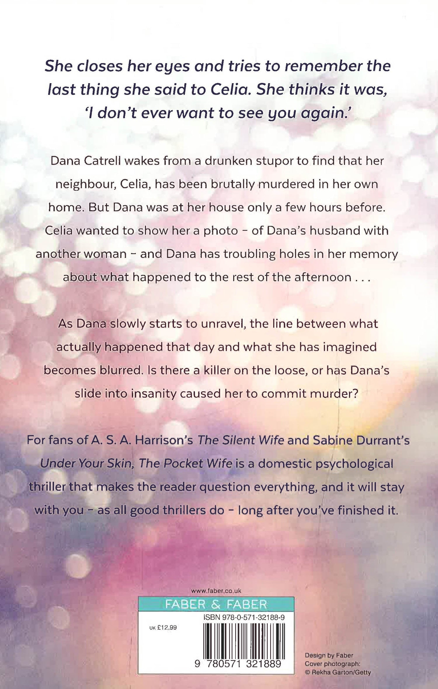 She closes her eyes and tries to remember the last thing she said to Celia. She thinks it was 'I don't ever want to see you again'. For fans of THE SILENT WIFE and BEFORE I GO TO SLEEP comes a gripping domestic psychological debut. Dana Catrell wakes from a drunken stupor to find that her neighbour, Celia, has been brutally murdered in her own home. But Dana was at Celia's house only a few hours ago. Celia wanted to show her a photo - a photo of Dana's husband with another woman - and Dana has blank spots of what happened to the rest of the afternoon . . . This is a thriller that makes the reader question everything. Dana, we learn, has a history of mental illness and as she descends into another manic episode, the line between what actually happened and what she has imagined becomes blurred.