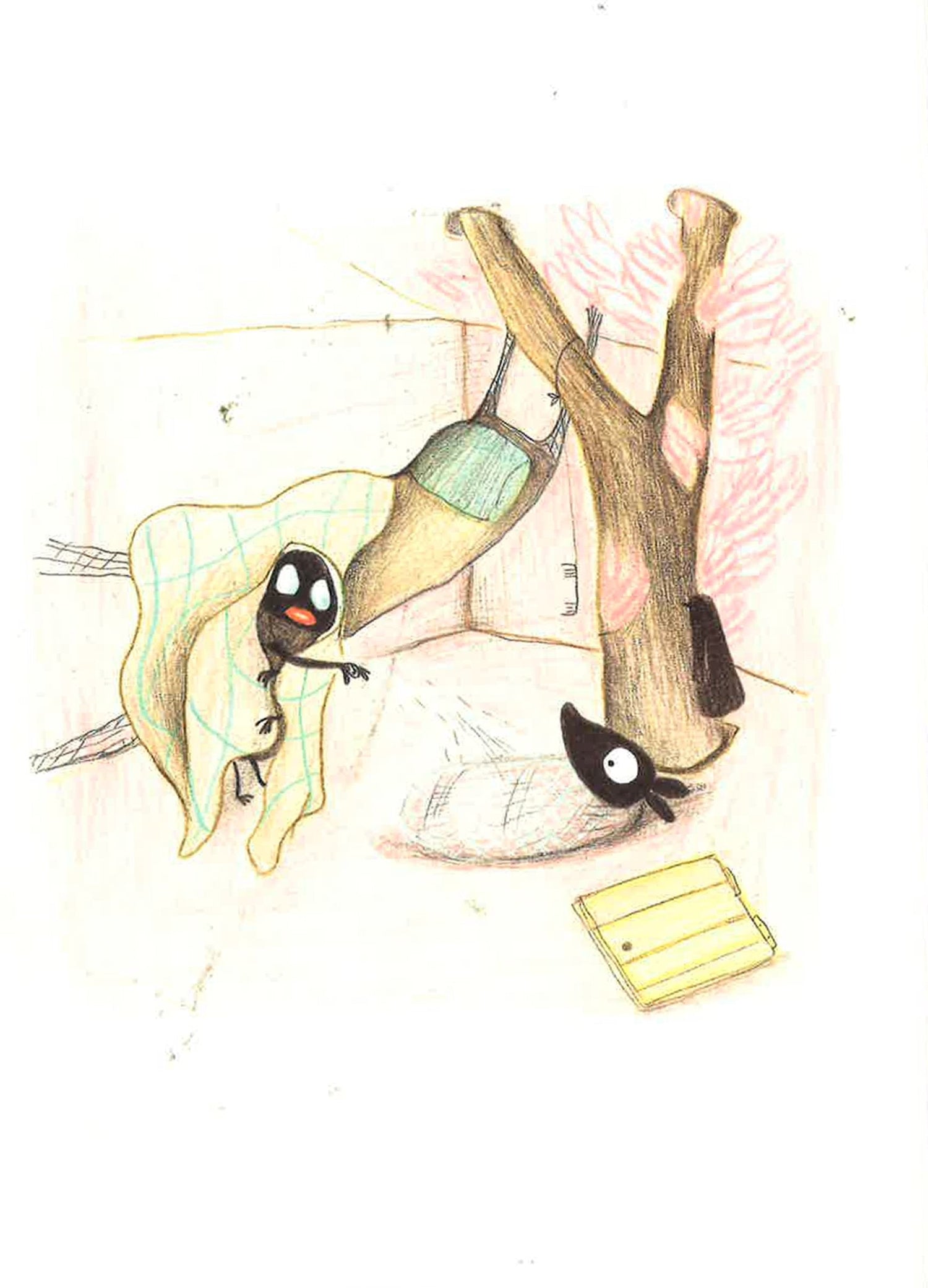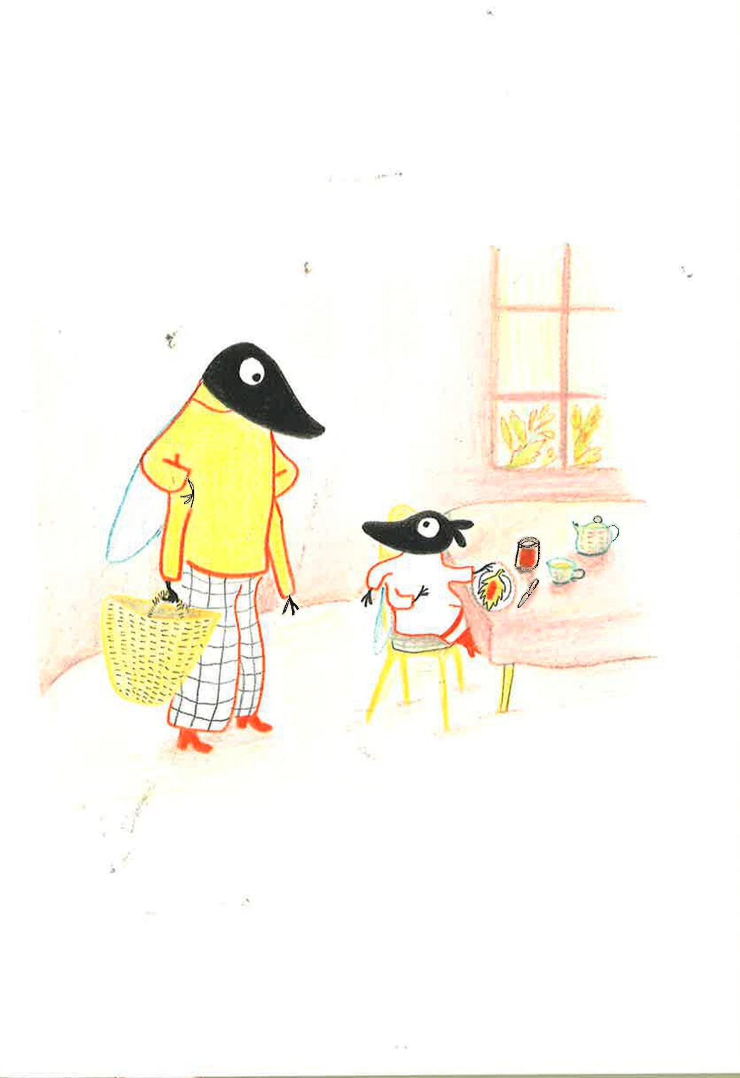 This delightful series of picture books expresses the humour, frustrations and profundities of the parent/child relationship through two endearing insects, Poka and Mia. Despite their multiple limbs and cellophane wings, children and adults alike will immediately identify with Poka and Mia and the situations they find themselves in, making these books ideal for children learning to read. Illustrated in the inimitable style of Kitty Crowther, which is at once both dark and sweet, these charming creatures will ingratiate themselves to even the most hardened cynic. Mia is picking flowers at the bottom of the garden. Someone is watching her. Who on earth could it be? The next day, she returns and at the foot of the tree she spots a strange ladder...