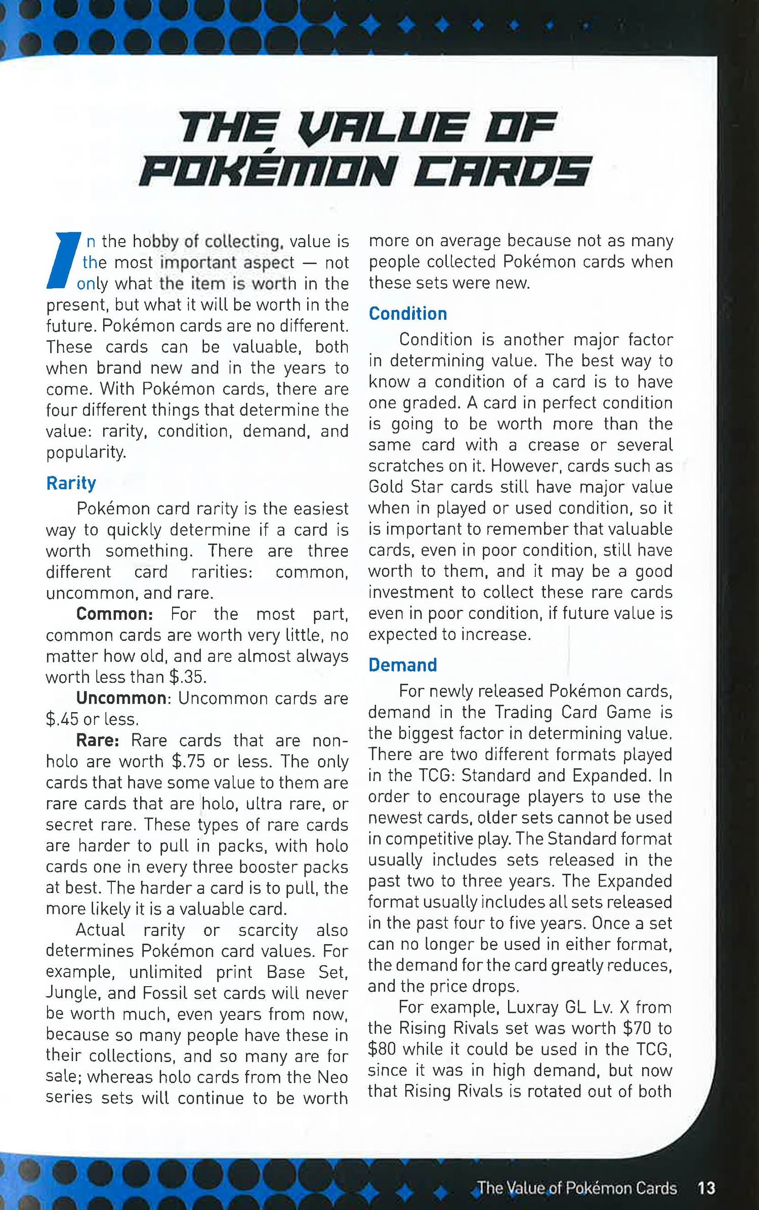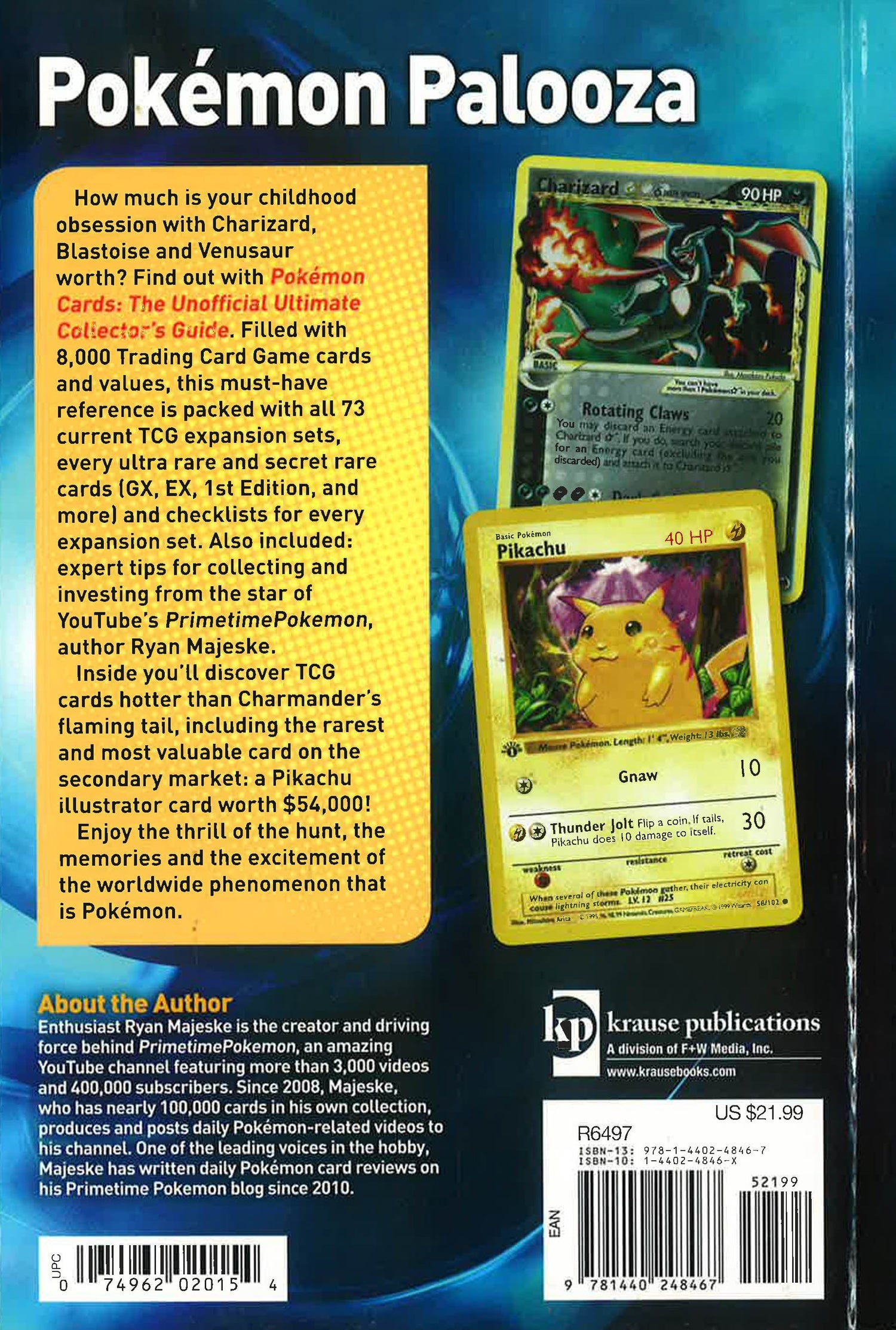 Pokemon Palooza! How much is your childhood obsession with Charizard, Blastoise and Venusaur worth? Find out with Pokemon Cards: The Unofficial Ultimate Collector's Guide. Filled with 8,000 Trading Card Game cards and values, this must-have reference is packed with all 73 current TCG expansion sets, every ultra rare and secret rare cards (GX, EX, 1st Edition, and more) and checklists for every expansion set. Also included: expert tips for collecting and investing from the star of YouTube's PrimetimePokemon, author Ryan Majeske. Inside you'll discover TCG cards hotter than Charmander's flaming tail, including the rarest and most valuable card on the secondary market: a Pikachu illustrator card worth $54,000! Enjoy the thrill of the hunt, the memories and the excitement of the worldwide phenomenon that is Pokemon.