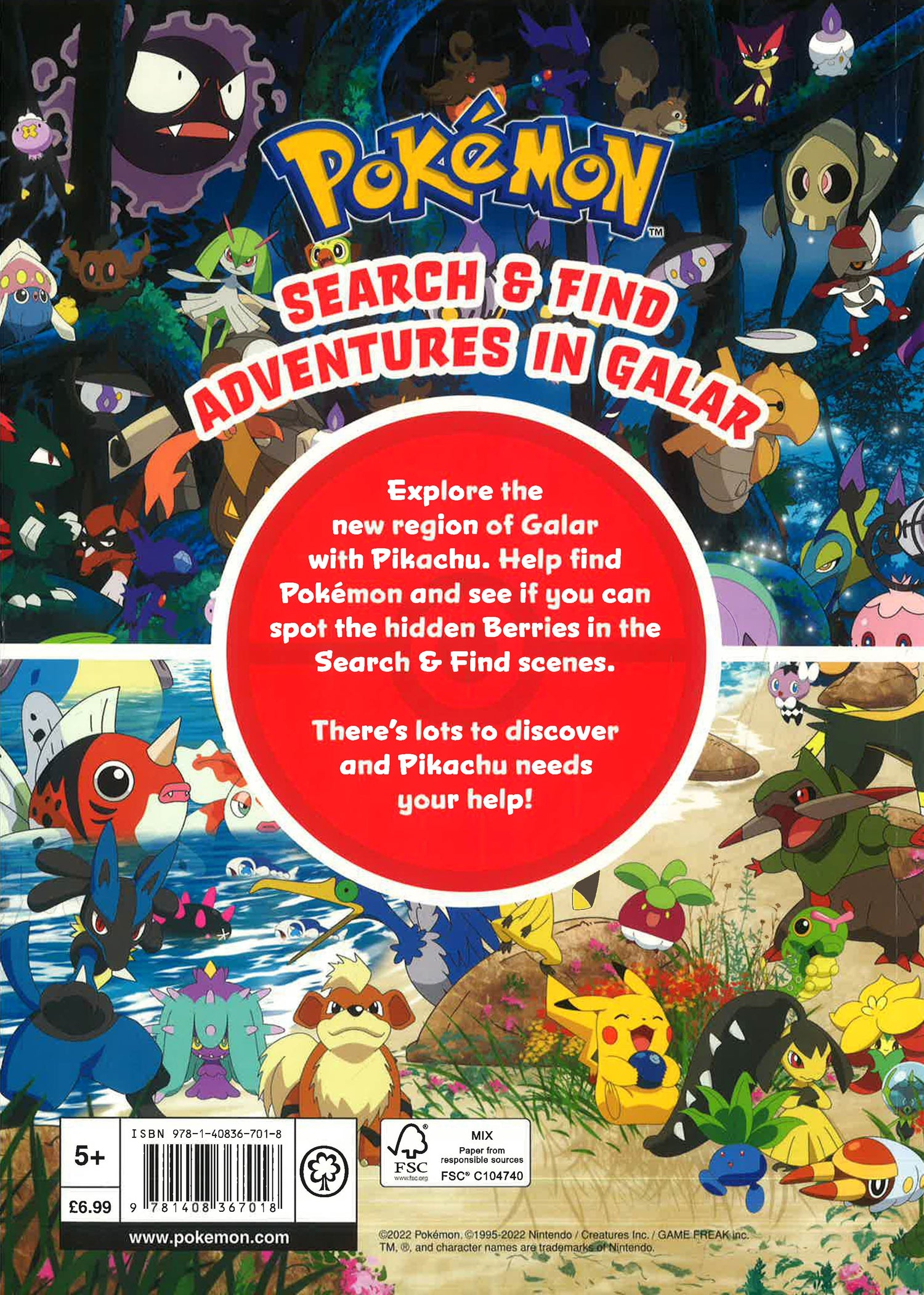 Join Pikachu as he explores the new region of Galar in this official Search & Find book. Help him find Pokémon in these unexplored lands and see if you can spot all the hidden Berries in the Search & Find scenes.