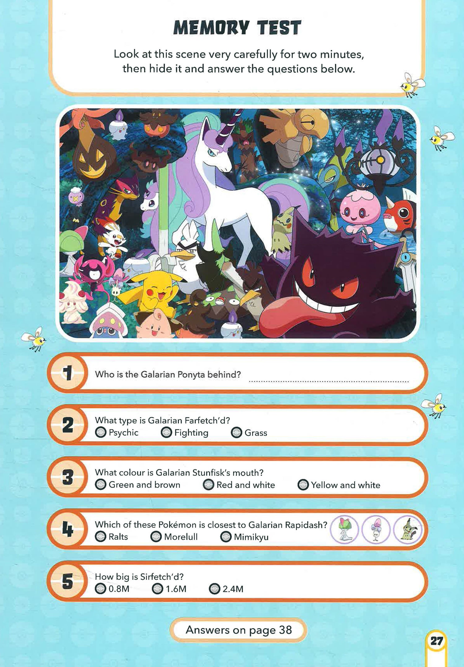 Enjoy other fun activities such as quizzes and spot the difference, and lean facts and stats about the Pokémon in the book in the mini Pokédex.