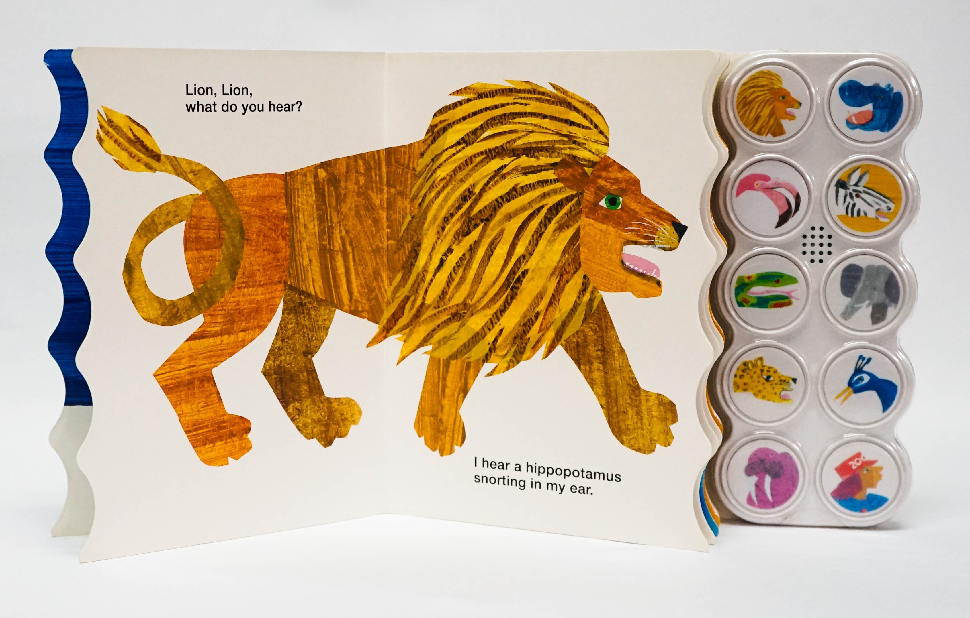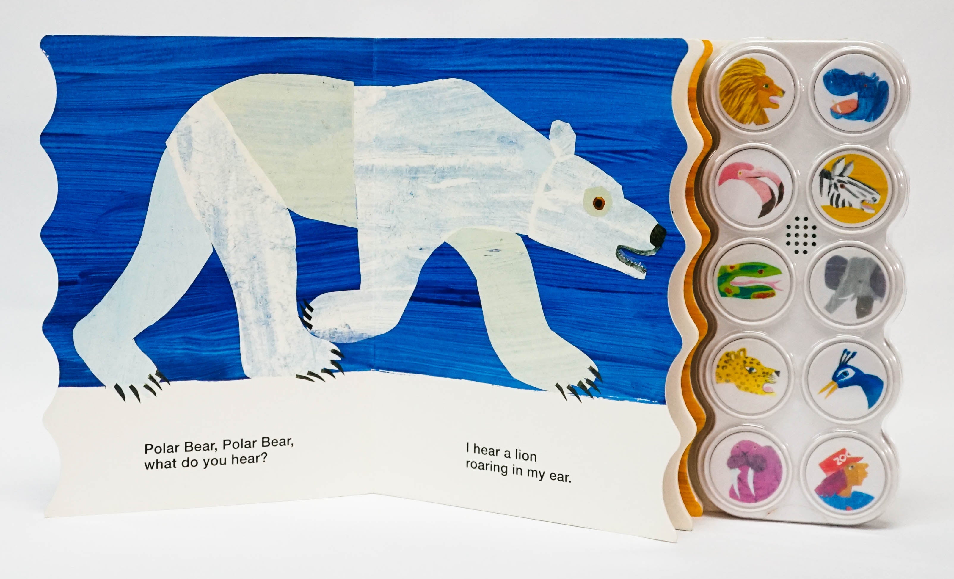 A new edition of this all-time favorite children's tale to delight children and parents alike. Bill Martin's playful story introduces a parade of rowdy zoo animals, all illustrated in Eric Carle's instantly recognisable, clean, crisp style. A perfect addition to this fun, noisy tale is a ten button sound panel. As each new animal appears on the bright, colorful pages, children will love to find, then press the right button to hear the noises that the braying zebra, roaring lion, fluting flamingo and other amazing animals make.