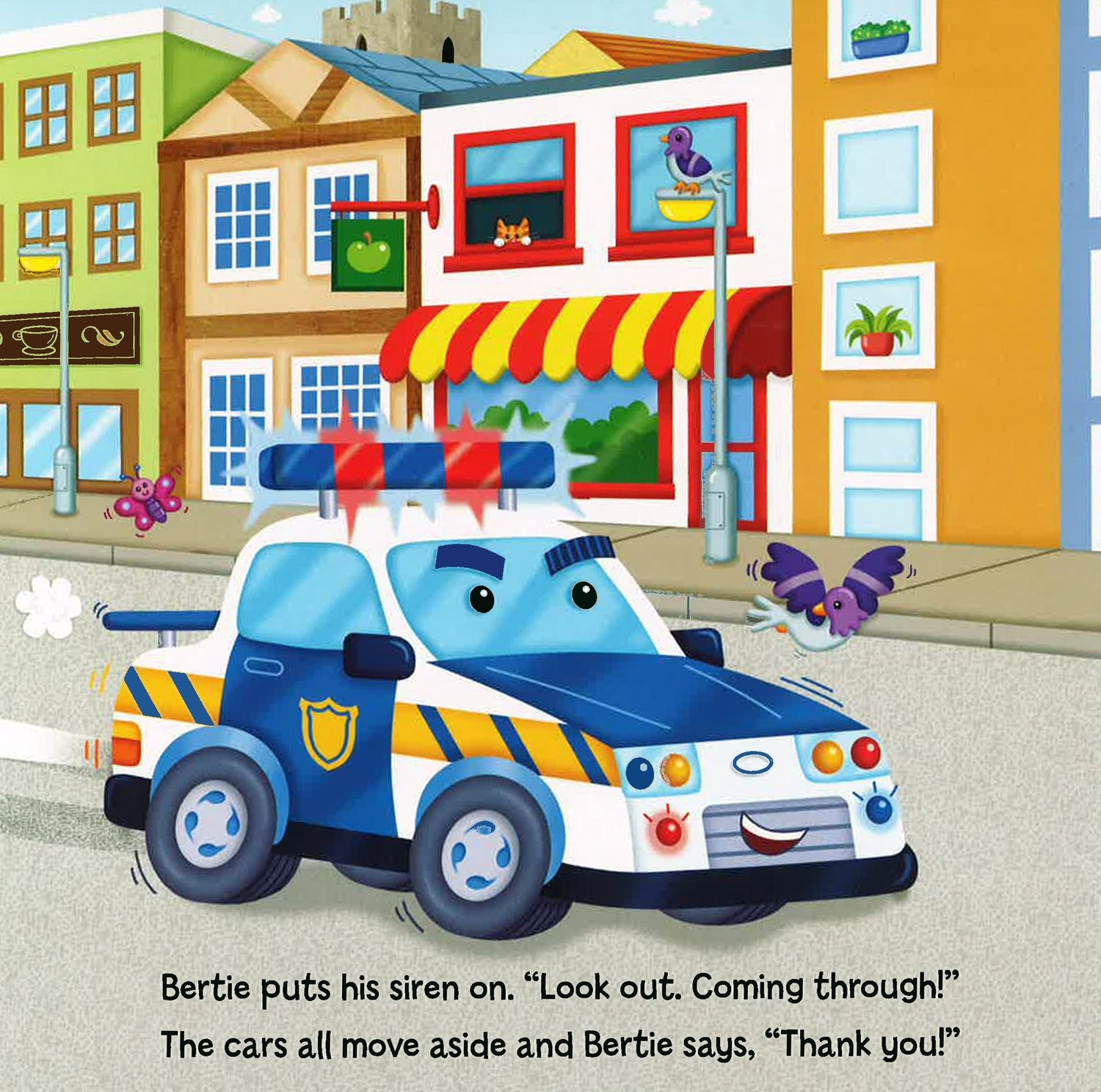 Bertie the Police Car is racing to save the day. Join in the noisy fun with this exciting touch-and-feel book, perfect for sharing at storytime. (Age Range 3-6)