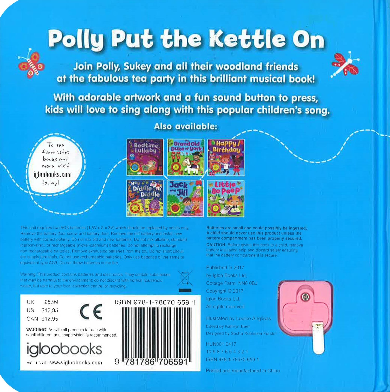 Join Polly, Sukey and all their woodland friends at the fabulous tea party in this brilliant musical book! With adorable artwork and a fun sound button to press, kids will love to sing along with this popular children's song.