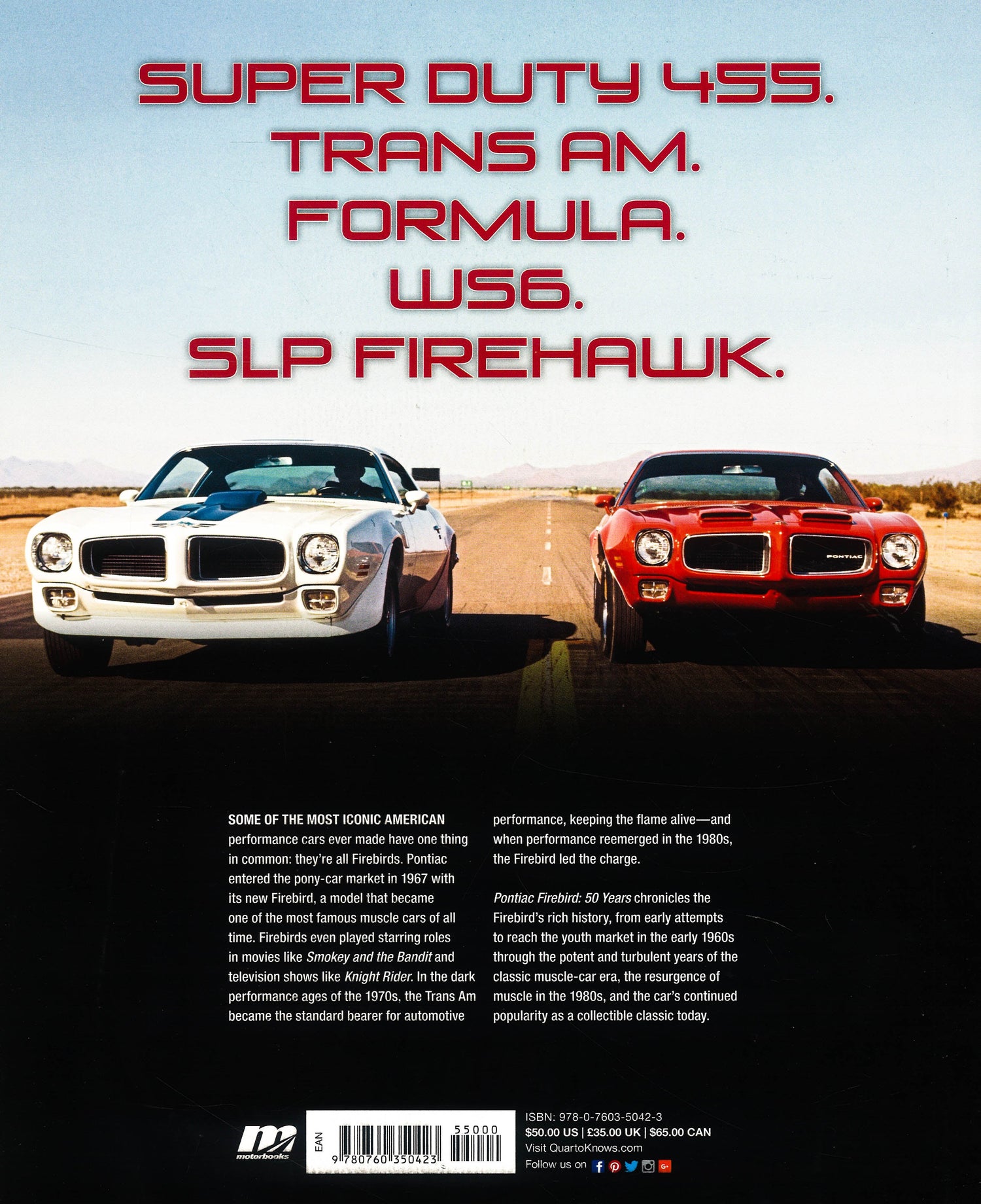 Celebrate 50 years of Pontiac's iconic muscle car. The early 1960s saw American auto manufacturers desperately trying to sell cars to the emerging baby-boom market. Pontiac attained success with its original muscle car, the GTO, but as successful as the GTO was, it was handily outsold by Ford's grand-slam home-run pony car, the Mustang. In response, Pontiac entered the pony car market in 1967, its new Firebird, a model that became one of the most iconic cars of the classic muscle-car era. Eventually the top Firebird model, the Trans Am, became the standard bearer for automotive performance in the U.S. market, kept the muscle car flame alive throughout the dark years of the 1970s and led the charge when performance reemerged in the 1980s. Pontiac Firebird: 50 Years chronicles the Firebird's rich history, from the early attempts to reach the youth market in the early 1960s, through the potent and turbulent years of the classic muscle car era, the resurgence of muscle in the 1980s, to the car's continued popularity today.