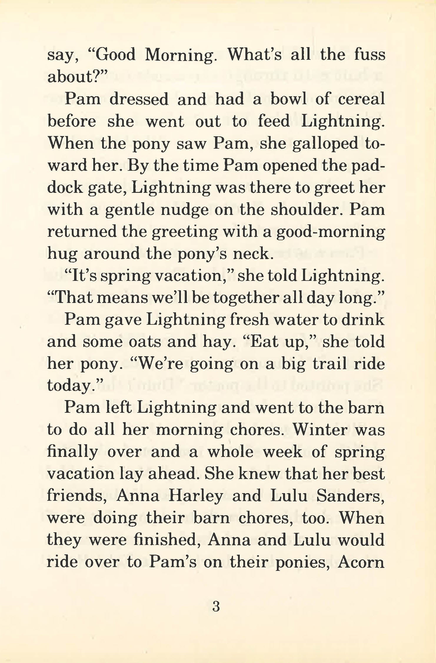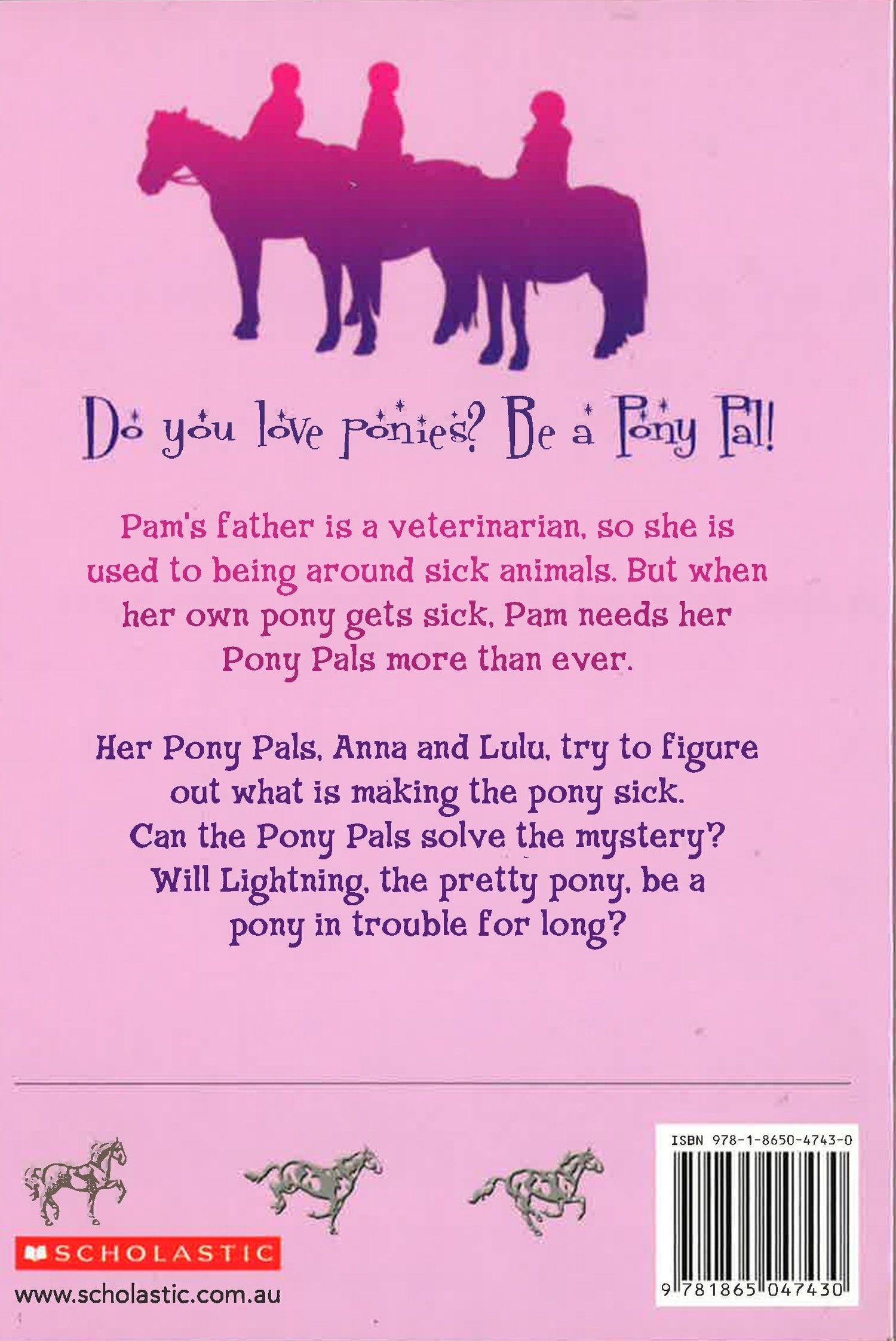 Pam's father is a vet so she's used to being around sick animals; but when her pony, Lightning, is taken ill, nobody seems to know how to help her. Time is running out for the troubled pony ... Can the Pony Pals work out what is making her sick?