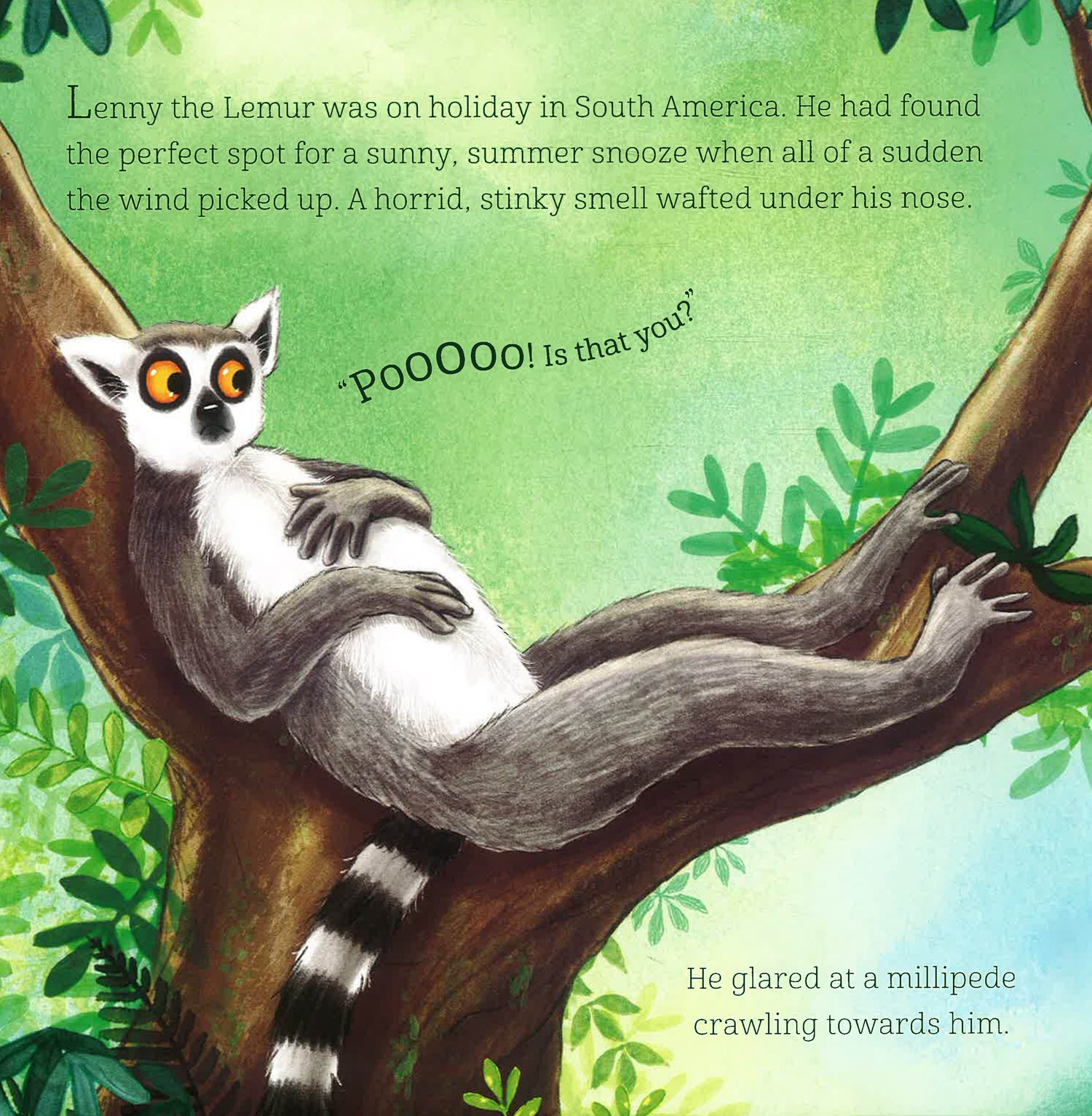 Lenny the Lemur is on holiday in the Amazon rainforest. He's just settling down for a nice snooze, when a very yucky smell wafts past . . .Poo-ie! What or who could it be?