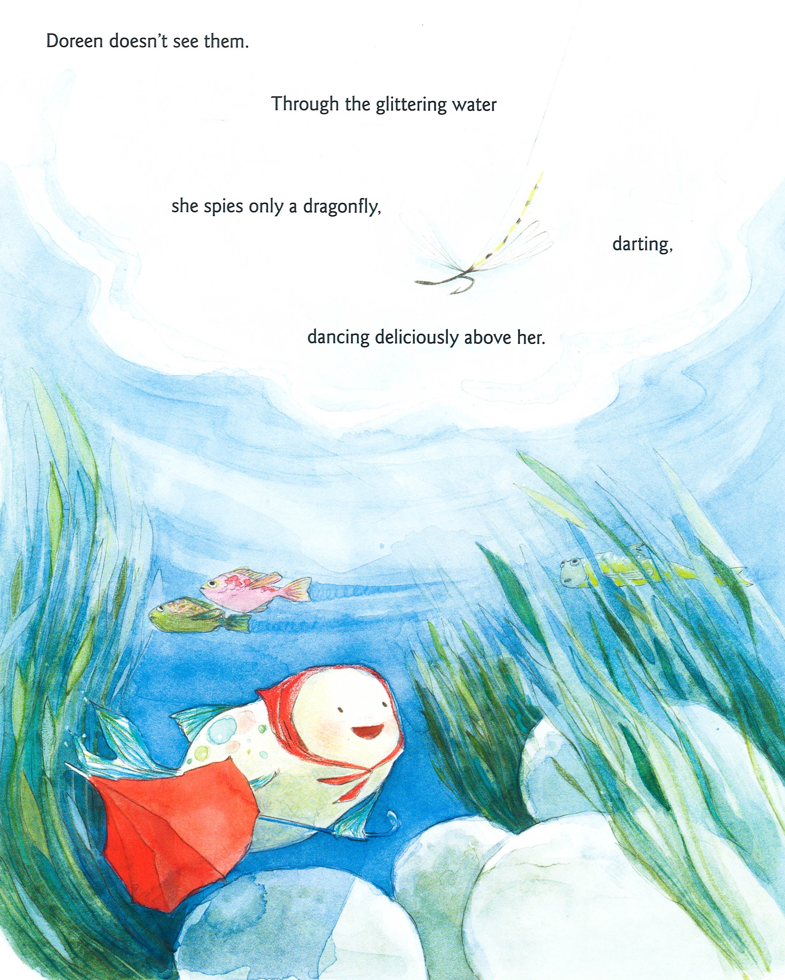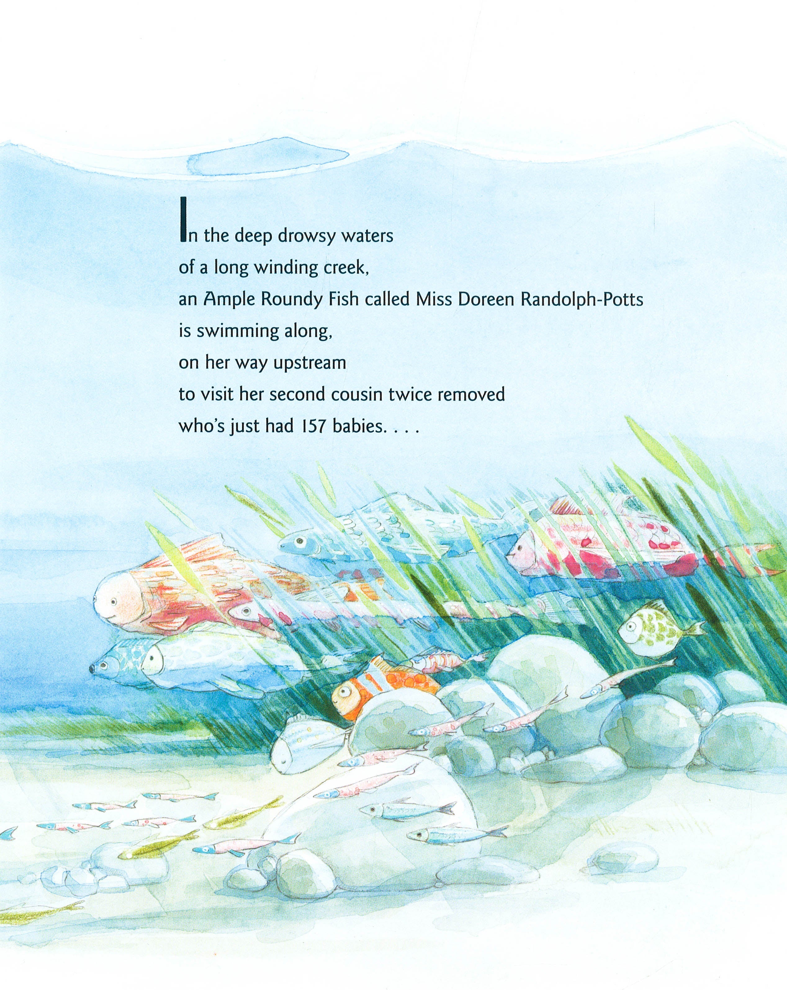 An Ample Roundy Fish called Mrs. Doreen Randolph-Potts is on a mission: to visit her second cousin twice removed who's just welcomed 157 babies. But when she spies what she thinks is a yummy dragonfly and is actually bait poor Doreen is lifted out of the water on a fishing pole. Luckily, Doreen is, shall we say, a wee bit clueless about the dire situation. Kids will love being in on the joke as our oblivious heroine arrives, in a roundabout way, at her final destination. Sally Lloyd-Jones, author of the "New York Times" bestseller" How to Be A Baby, " and acclaimed illustrator Alexandra Boiger bring the world of a fish to vibrant, funny life.