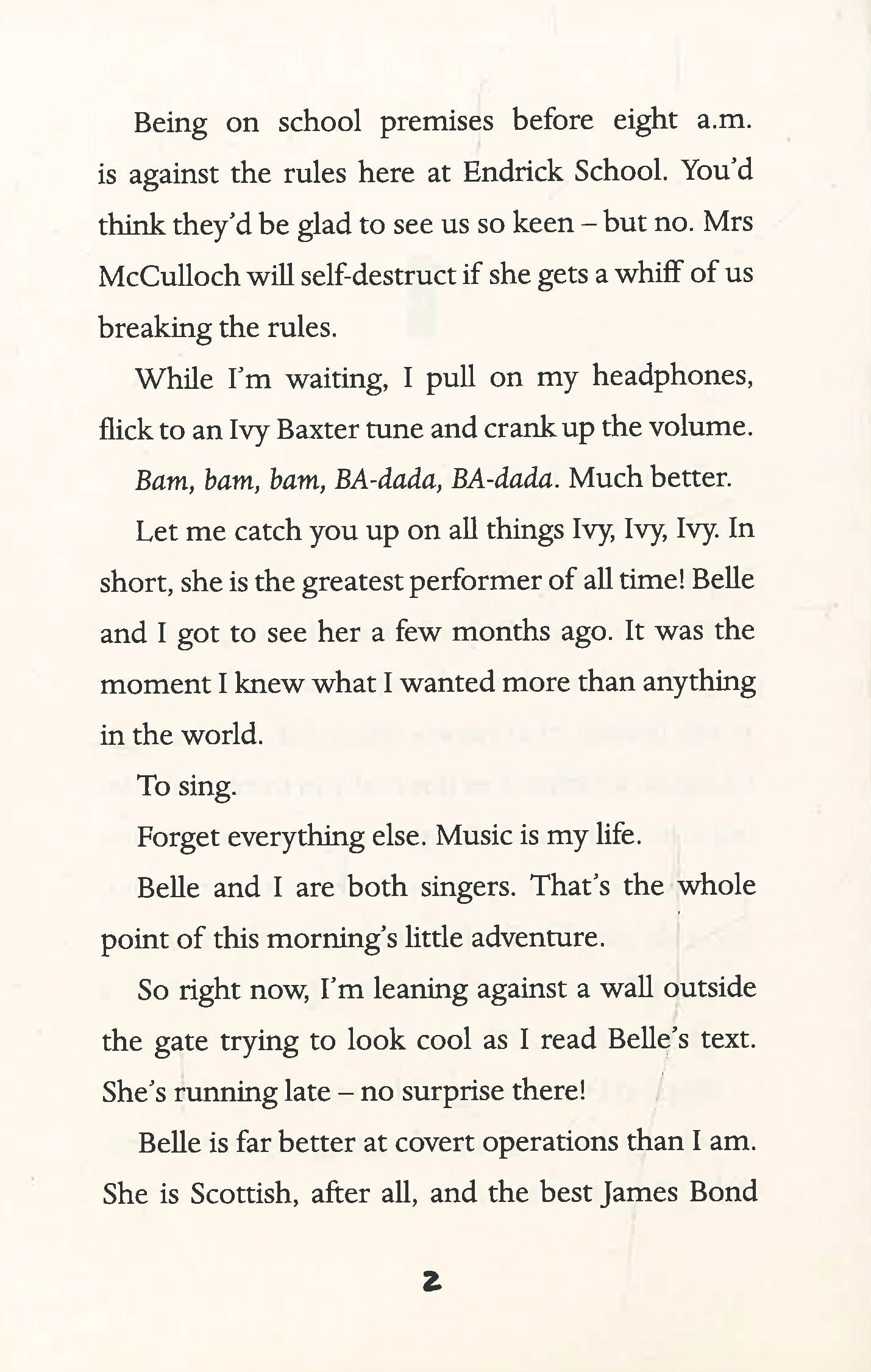 Fourteen-year-old Storm Hall lives to sing. Forget parties. Forget boys. When Storm is told she's going to miss a national competition, to go on a once-in-a-lifetime holiday to Hawaii, her life is OVER. What could be worse than having to give up singing to visit an island paradise? What if her (former) best friend is taking her place? A family trip to Hawaii is just the beginning. Storm meets a Hawaiian band who need a singer last minute. When the song is on local radio the next day all of Storm's dreams are coming true . . . until the band introduce their singer on air. It's NOT her.