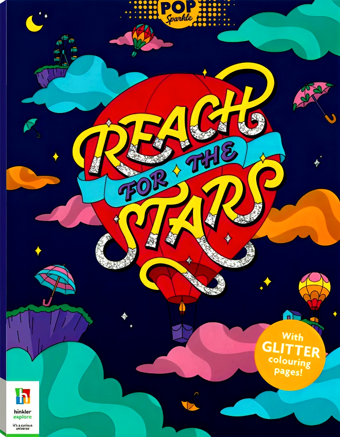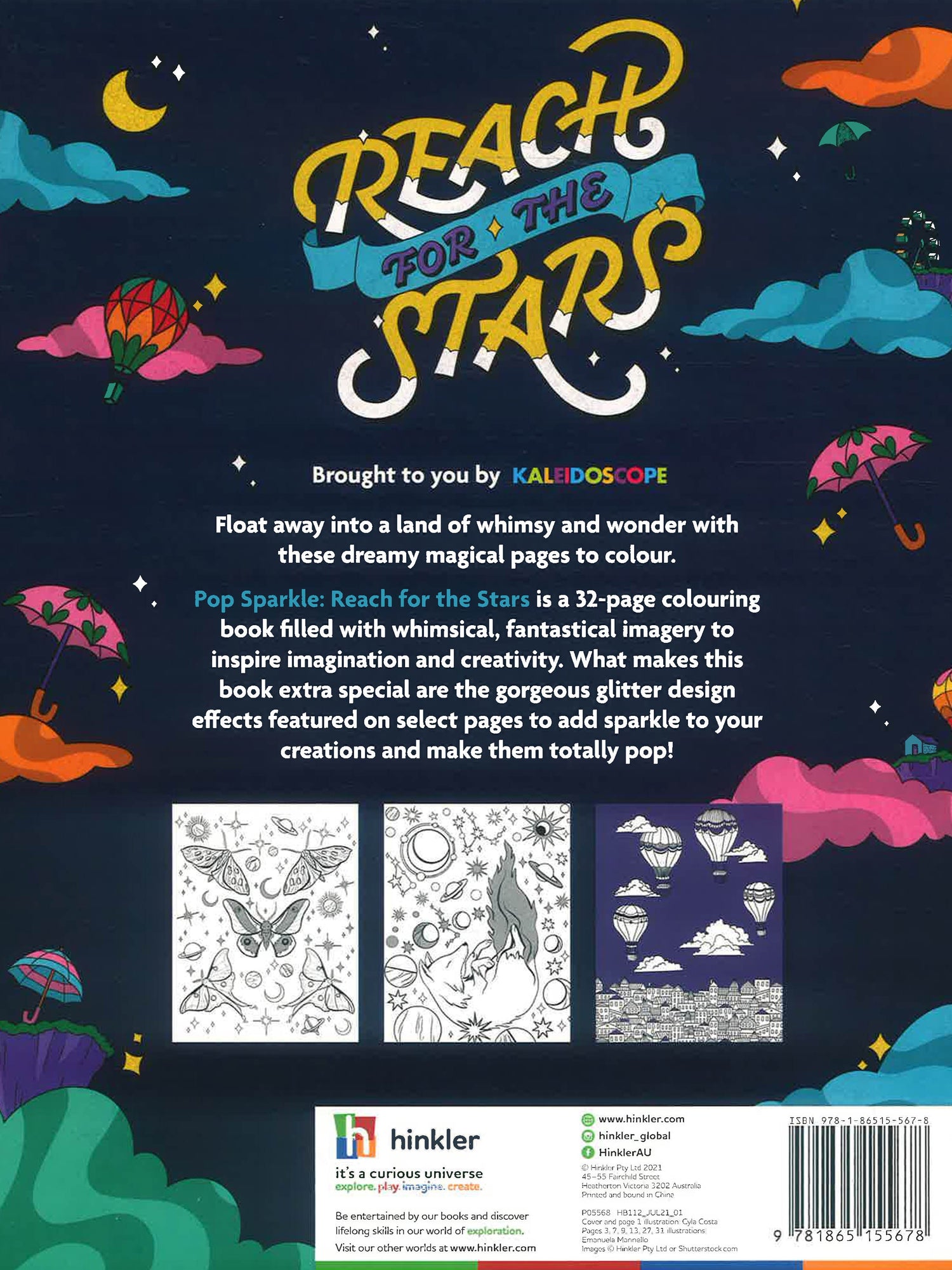 Brought to you by Kaleidoscope, Pop Sparkle: Reach for the Stars features 16 colouring pages filled with whimsical, fantastical imagery to inspire imagination and creativity. What makes this book extra special is the gorgeous glitter design effect featured on select pages to add sparkle to your creations, making them totally pop!