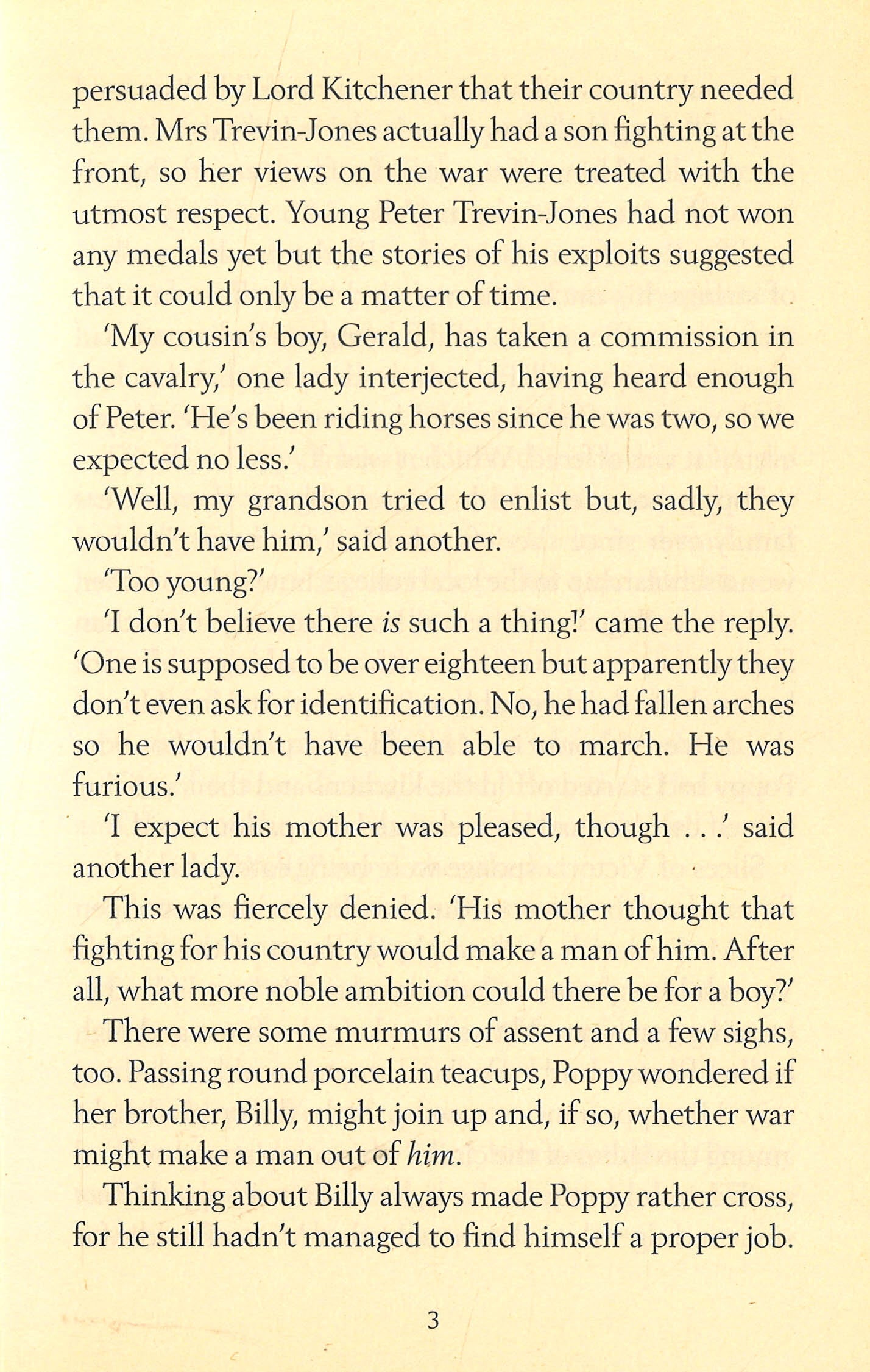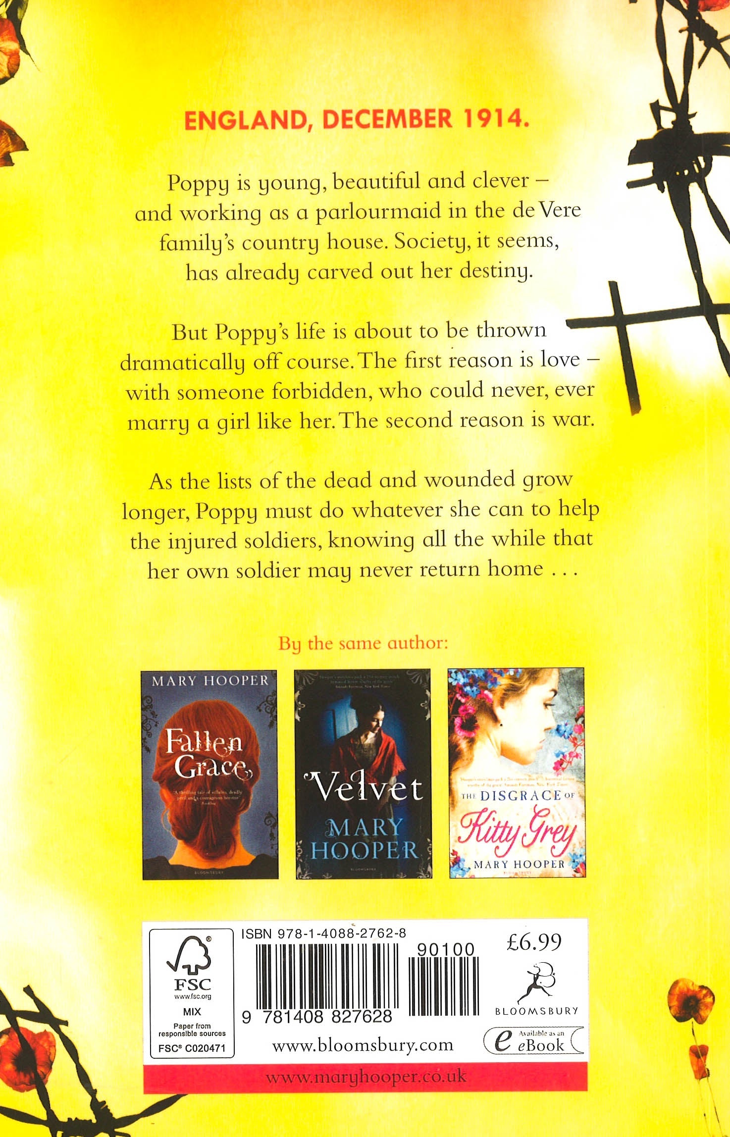 Poppy is young, beautiful and clever – and working as a parlourmaid in the de Vere family's country house. Society, it seems, has already carved out her destiny. But Poppy's life is about to be thrown dramatically off course. The first reason is love – with someone forbidden, who could never, ever marry a girl like her. The second reason is war. As the lists of the dead and wounded grow longer, Poppy must do whatever she can to help the injured soldiers, knowing all the while that her own soldier may never return home . . .