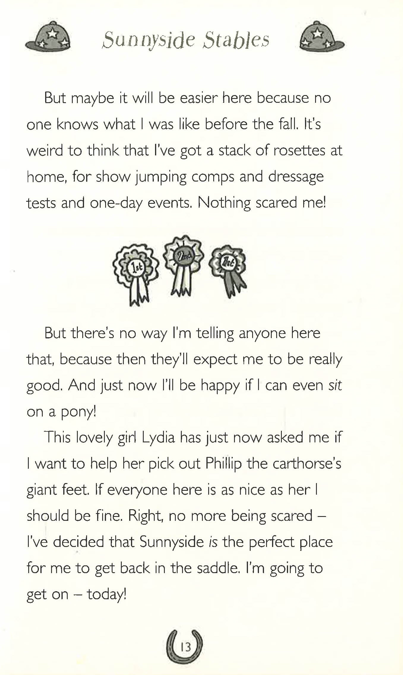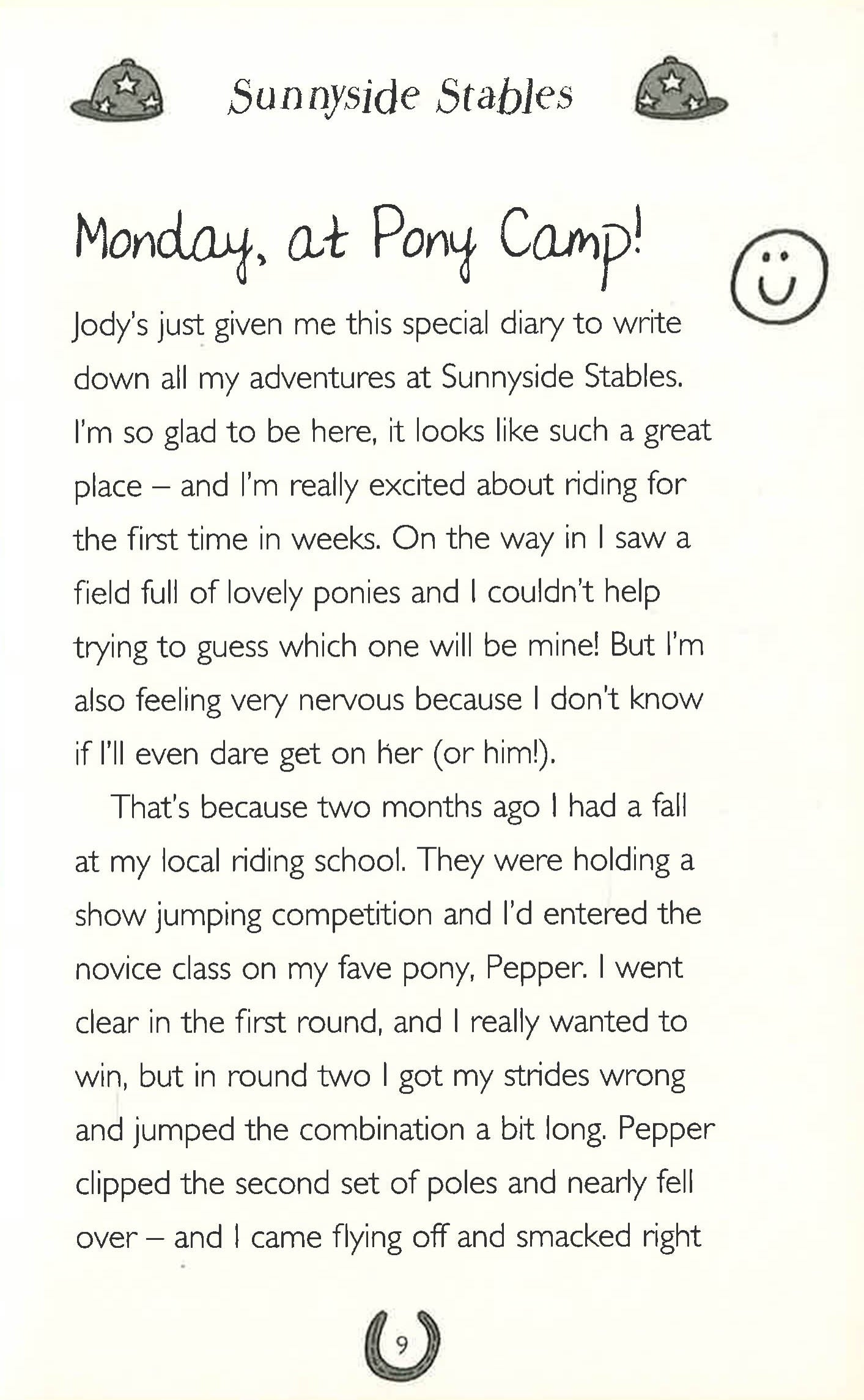 Welcome to Sunnyside Stables and the pony holiday of your dreams. Written in diary format, each book in this series follows a different girl's adventures at pony camp as she gets her very own pony, makes new friends and enemies and tackles tough challenges.