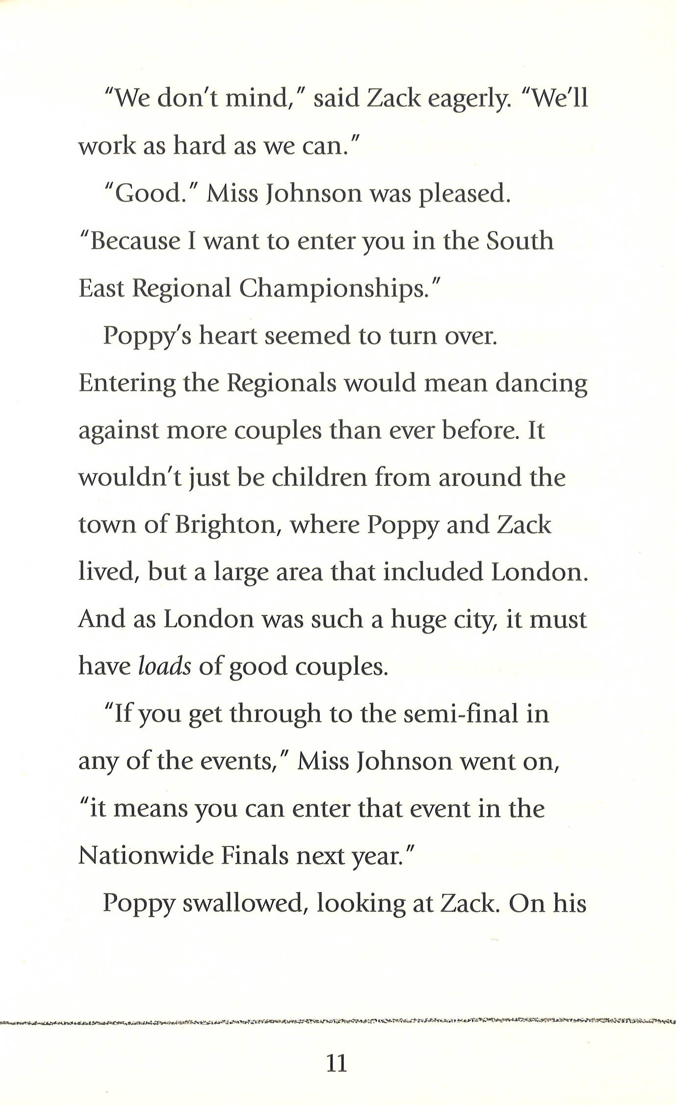 Samba, quickstep, tango and waltz - Poppy loves to dance them all! Poppy Love, her dance partner, Zack, and Zack's cousin, Anna, attend a tea dance and dance the waltz for everyone; Poppy turns her brother's birthday party into a real surprise when she and her friends provide the entertainment; Zack loses heart with his dancing - will Poppy lose her partner? Four stories that sparkle in this shining new series about dance.