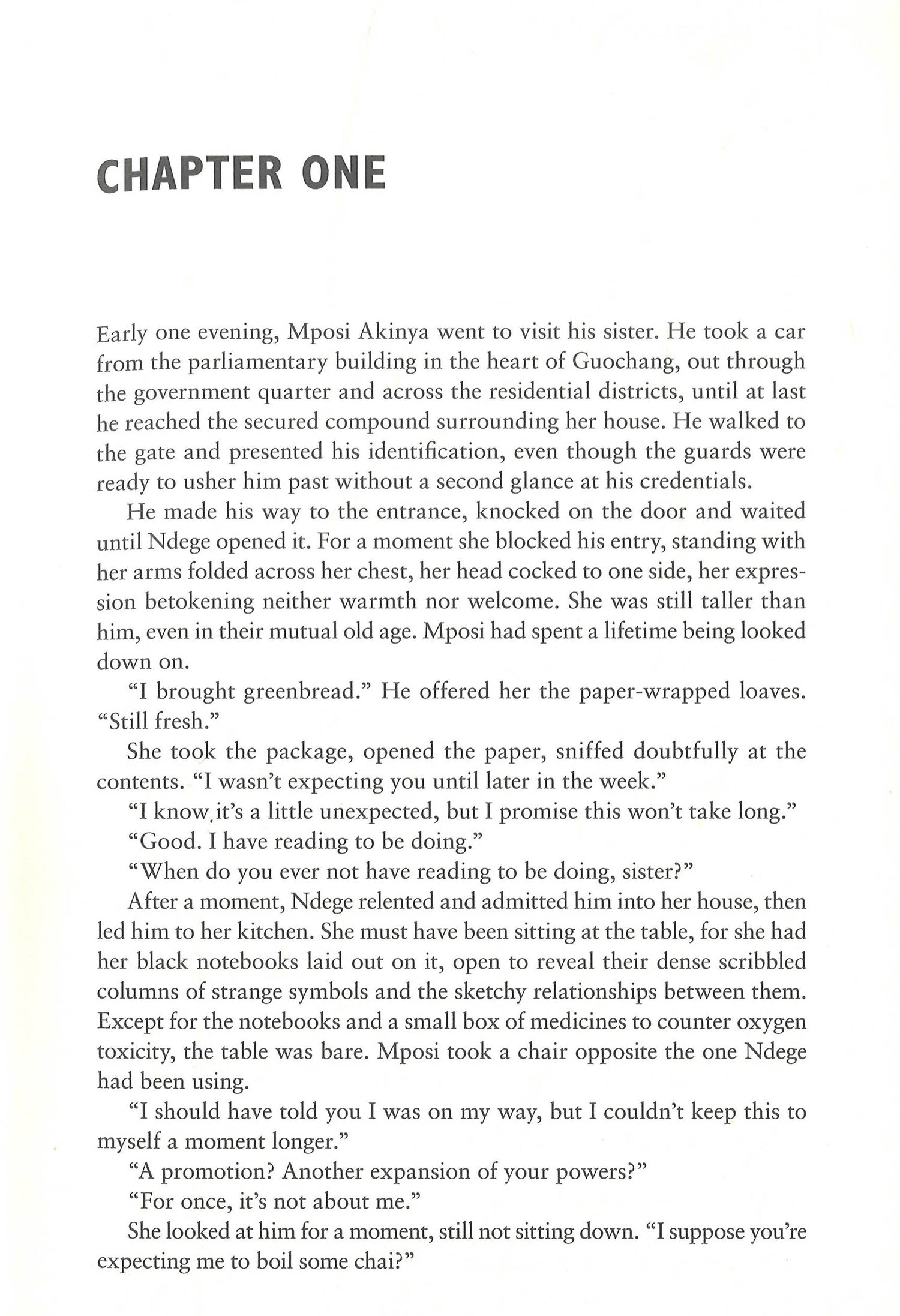 The cryptic message originated seventy light-years away from the planet Crucible, where Ndege Akinya lives under permanent house arrest for her role in the catastrophe that killed 417,000 people. Could it be from her mother, Chiku, who vanished during a space expedition decades earlier? Ndege's daughter, Goma, a biologist, joins the crew of the Travertine, dispatched to Gliese 163 to uncover the source behind the enigmatic message. Goma's odyssey will take her not only into the furthest reaches of space but centuries into her family's past where the answers to the universe's greatest mysteries await...