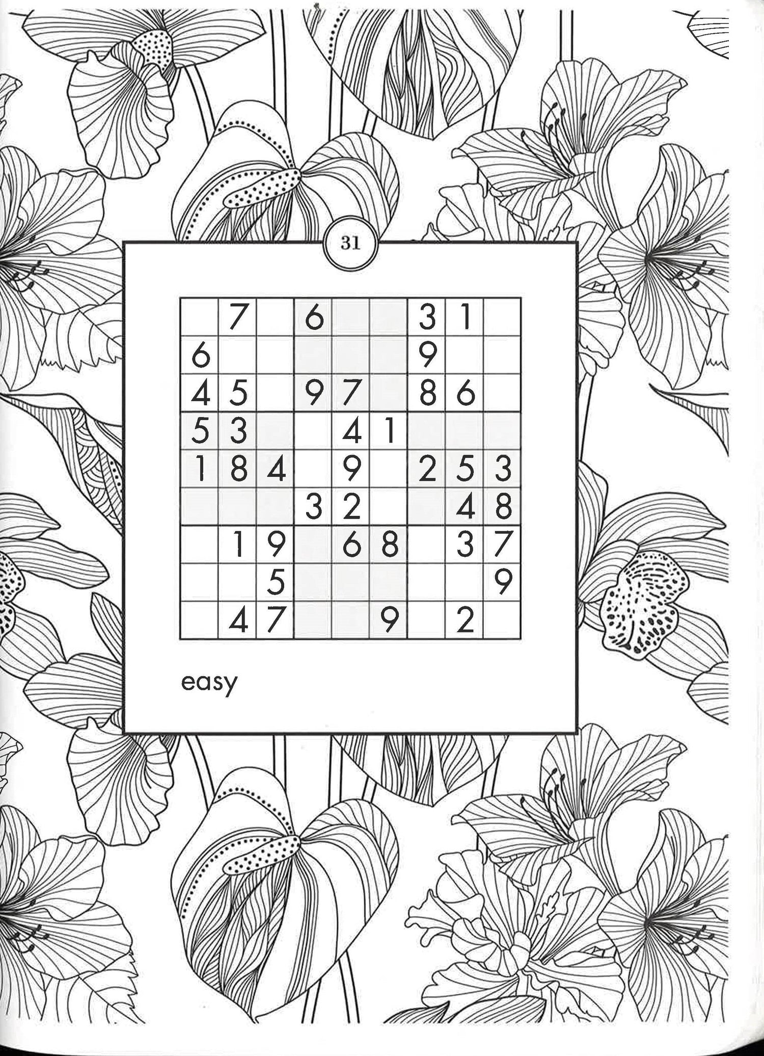 The perfect marriage of two hot trends! Take a break from your Sudoku solving and brain training to color in the pretty designs decorating each puzzle page.