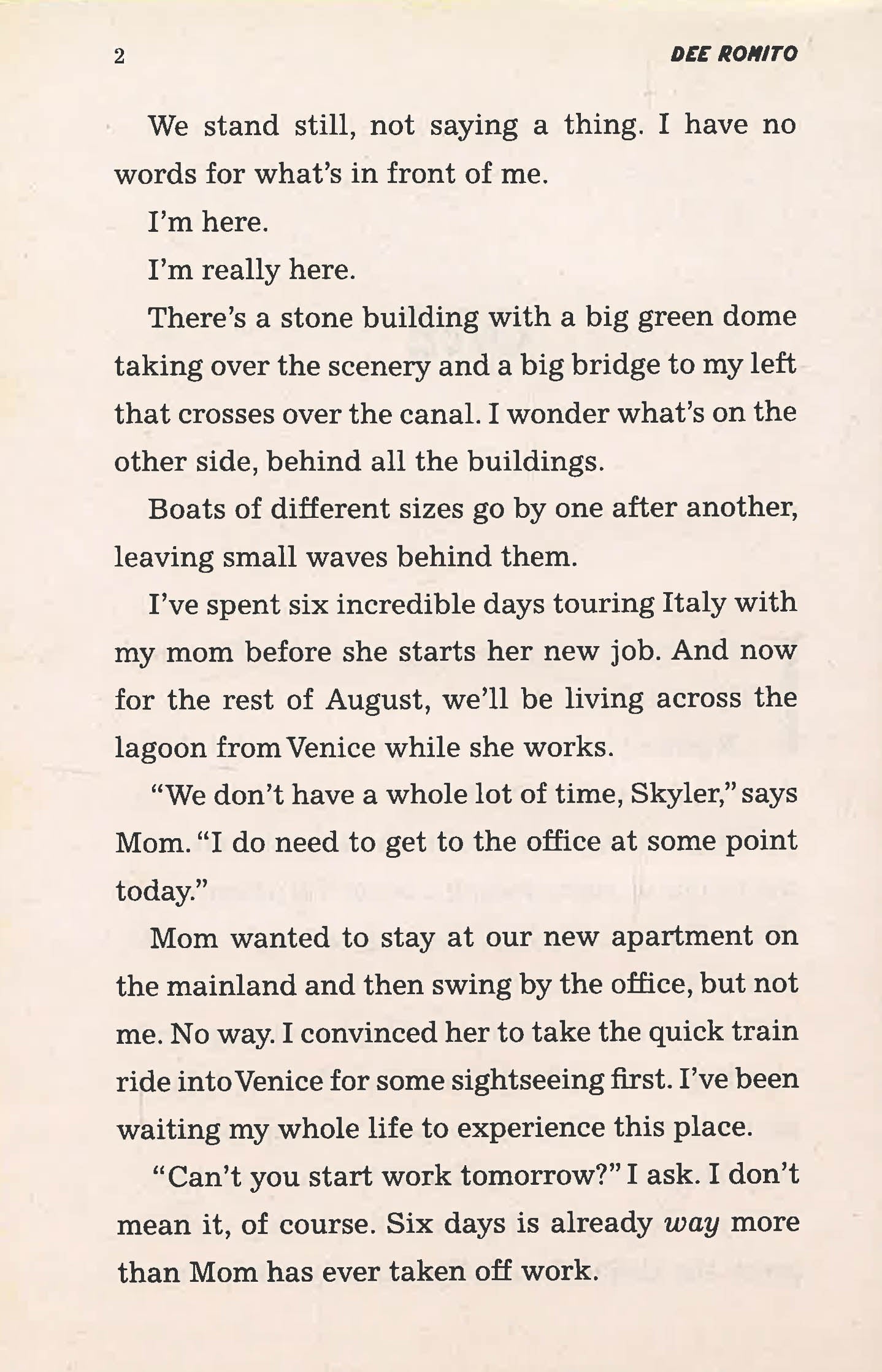 Dee Romito is an author and former elementary school teacher. Her middle grade books include The BFF Bucket List, No Place Like Home, Postcards from Venice, and coauthored Best. Night. Ever. Her debut picture book, Pies from Nowhere: How Georgia Gilmore Sustained the Montgomery Bus Boycott received a starred review from Booklist. She blogs about writing at WriteforApples.com and is co-advisor of Buffalo-Niagara Children's Writers and Illustrators. While she does her best to be a grown-up most of the time, giggling with her BFFs is still one of her all-time favorite things. You can visit her website at DeeRomito.com.
