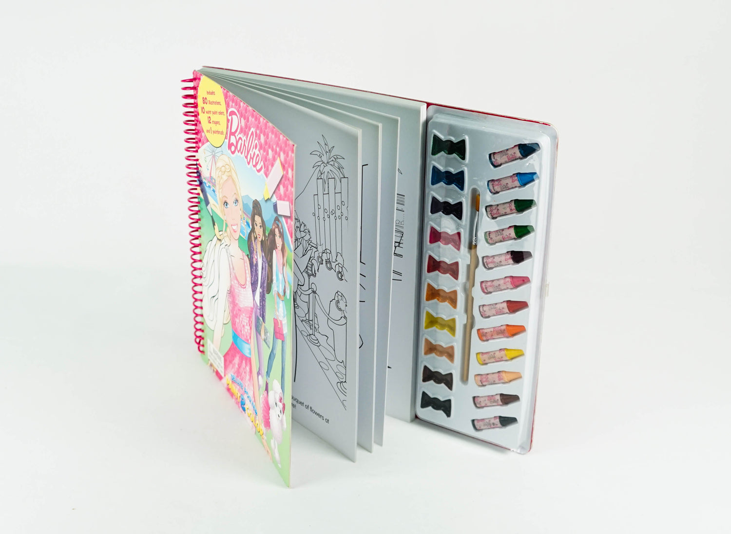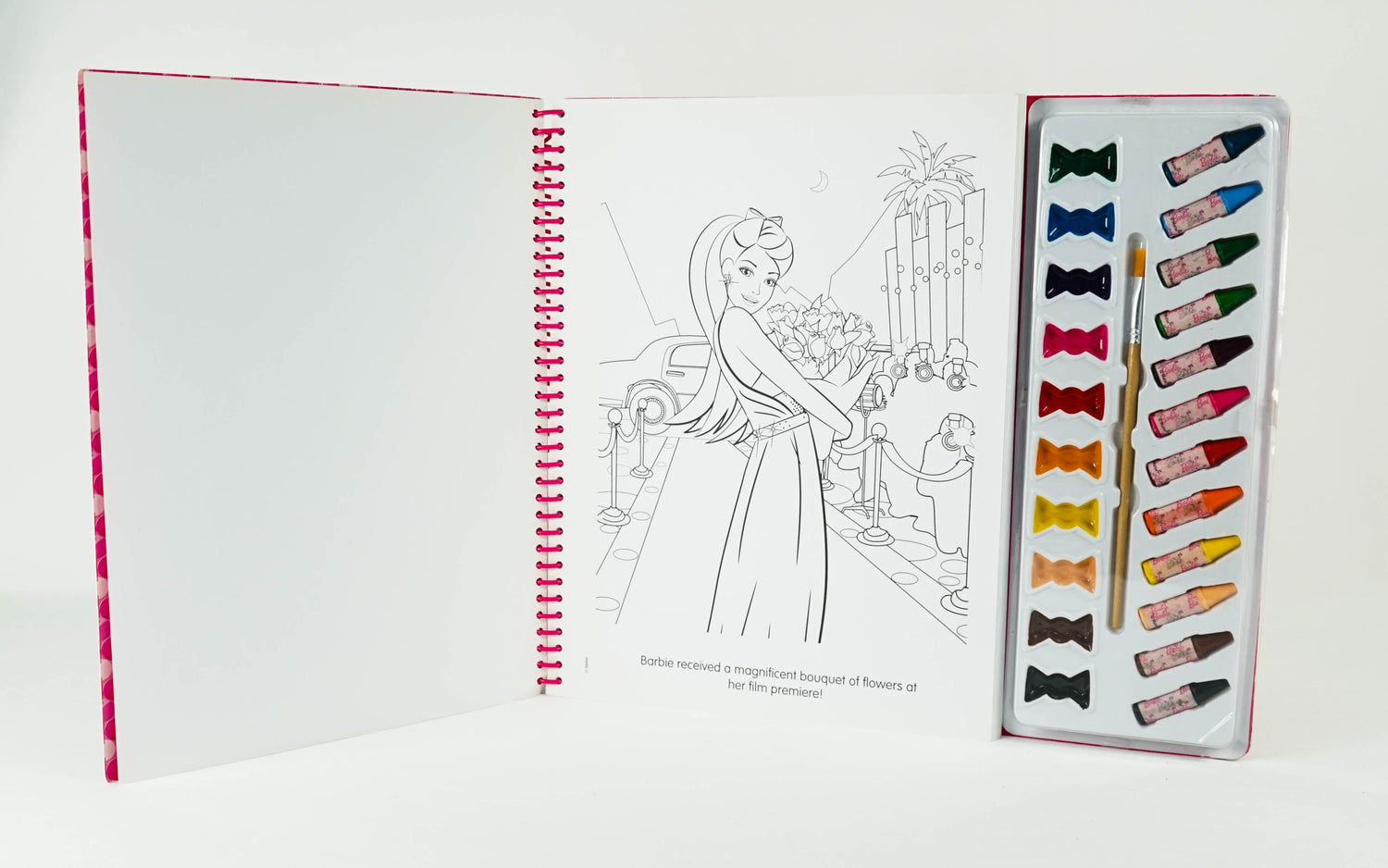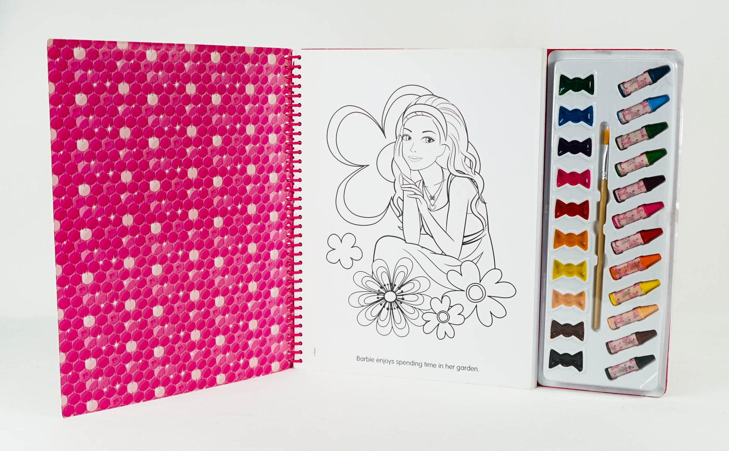 Join Barbie and her friends in this collection of glamorous images and fun games just waiting for your artistic flair! Use your paintbrush and crayons to add a personal touch to every page. includes 80 illustrations, 10 water paint colors, 12 crayons and 1 paintbrush.