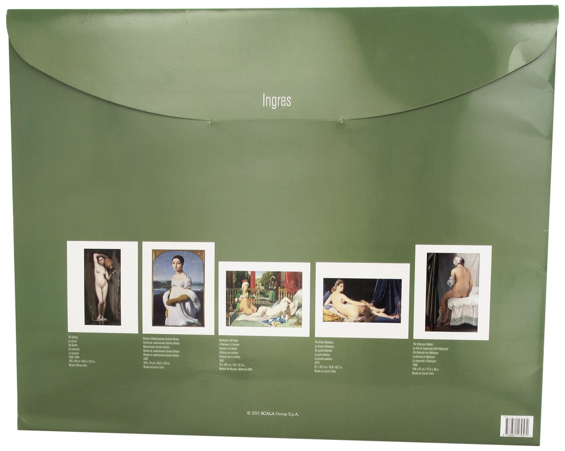 5 art posters in a laminated slipcase with illustrations of the posters and text in five languages ??on the back.