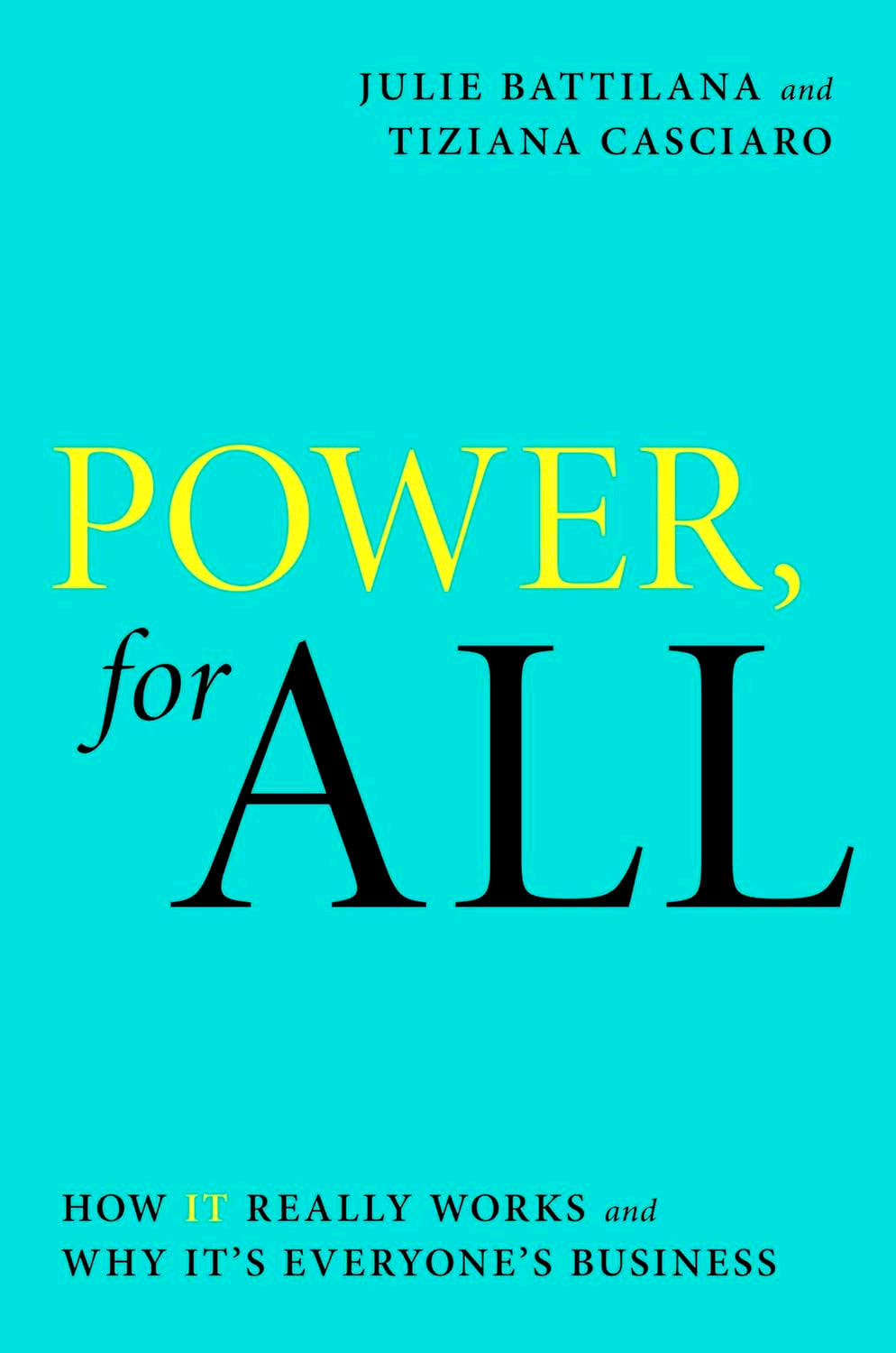Power is one of the most misunderstood—and therefore vilified—concepts in our society. Most people assume power is predetermined by personality or wealth, or that it’s gained by strong-arming others. Many write it off as inherently corrupt or “dirty” and want nothing to do with it. But as pioneering researchers Julie Battilana and Tiziana Casciaro deftly show in Power for All, power is the ability to influence someone else’s behavior. This influence is derived from having access to valued resources, which anyone can have, regardless of their income or status in life. Everyone has a resource to offer, so everyone has access to power.