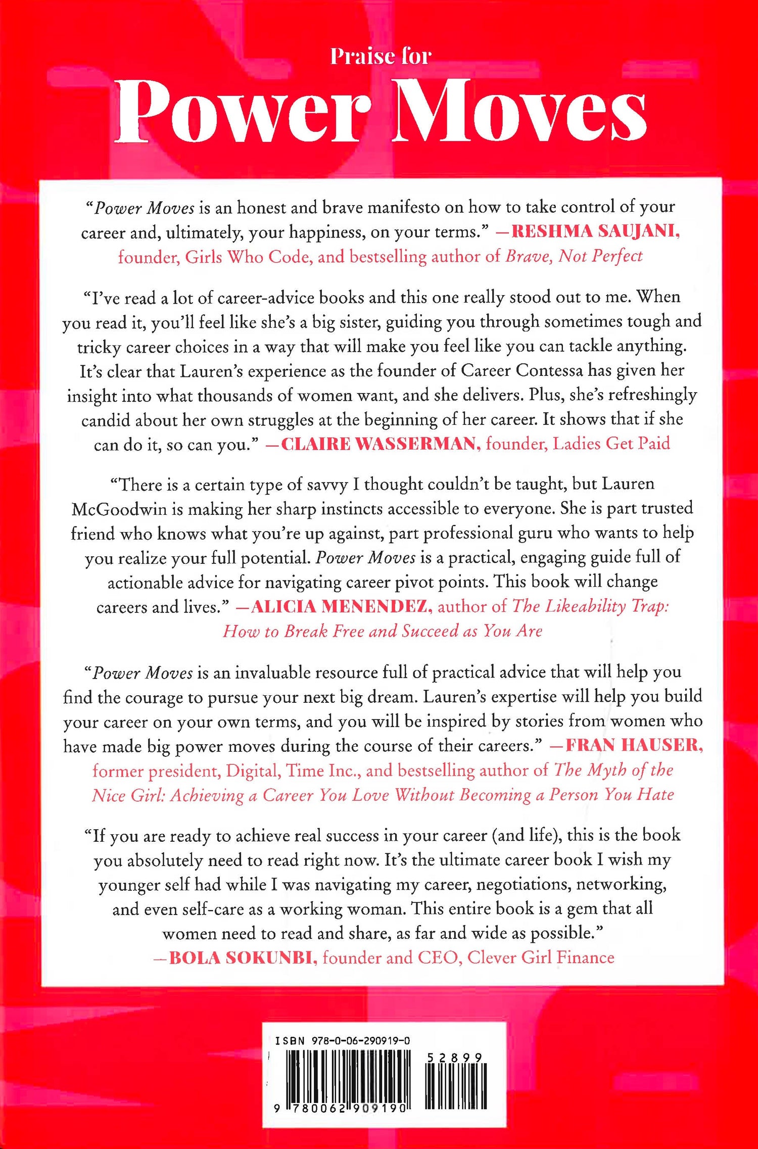 From the founder of the influential website Career Contessa, an invaluable career resource for women feeling stuck or unfulfilled that combines actionable advice, learning tools to make impactful life changes, and an in-depth discussion of how to build a meaningful career on your terms.With her popular website Career Contessa, Lauren McGoodwin built an audience of ambitious, professional, millennial women who thought they did everything right-they got the degree, the internship, and even the promotion-but still wondered why they felt stuck and unfulfilled. The first site of its kind to focus on the unique, complex aspects of women's careers, Career Contessa offers women the smart advice they deserve, in a voice that resonates.Drawing on the insights and lessons developed from Career Contessa, Power Moves is the essential handbook that helps professional women truly feel understood so they can bypass perfection and planning and head straight to evolving. McGoodwin addresses young professionals' number-one concern: career transitions and growth, and engages them with specific goals, including:What is a Power Move and why they matterCutting out comparison, shame, and self-loathingHow to abandon the elusive "dream job"Embracing your inner questioner, your inner quester, and your inner-quitterMaking money moves and taking control of your financial futureTuning out from the noise and tuning into your voicePower Moves is filled with the information, guidance, advice, and essential tools, (including helpful graphics) that can help women take decisive, bold steps without self-doubt and fear, Power Moves shows women how to build a successful career on their own terms.