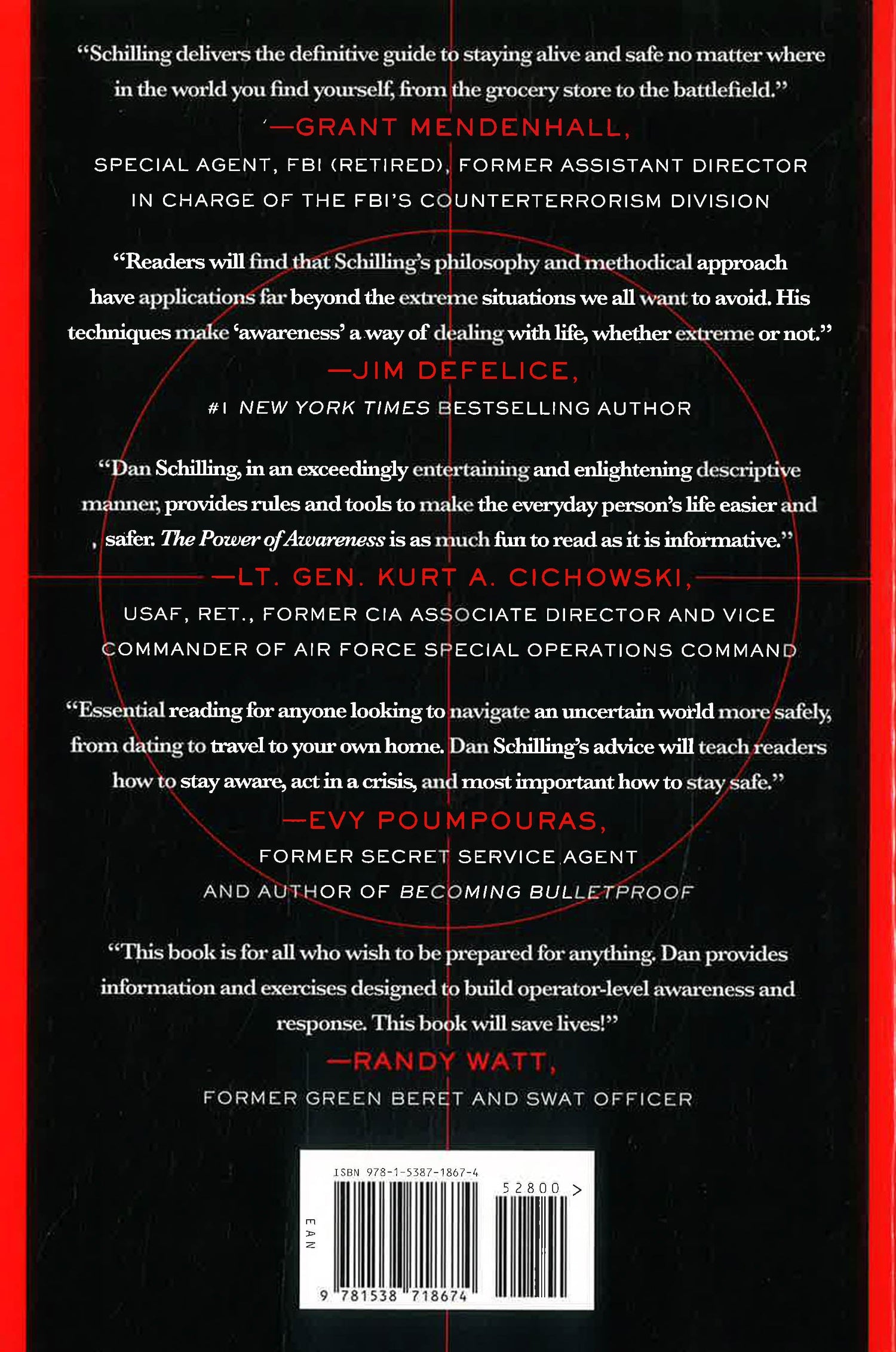 A spy is suddenly aware she's being stalked through the streets of an overseas city. A special ops soldier intuitively recognizes something's "off" during a high-risk mission. In these life-threatening situations experts know exactly how to use their senses and what actions to take. At the intersection of The Gift of Fear and Make Your Bed, The Power of Awareness will make sure you will, too. In his empowering book, Dan Schilling shares how to identify and avoid threats using situational awareness and intuition just like the pros. Told with wit and wisdom, this compelling guide uses harrowing stories from Dan's special operations career and those of other experts to outline six easily implemented rules you can apply anywhere to improve your personal safety. It incorporates exercises to understand how situational awareness works in real life, how to better listen to your intuition, and when confronted by a criminal how to make a plan and take action with confidence--so you can escape the threat before it's too late. He also includes tools on how to secure your home or hotel room, use public transportation, plan international travel, and reduce your criminal target appeal and exposure, in addition to how to escape an active shooter situation. As a bonus, you'll even learn how to survive a date without getting murdered. By the last page you'll know that your own Power of Awareness can save your life.