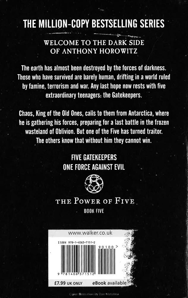The earth has almost been destroyed by the forces of darkness. Those who have survived are barely human, drifting in a world rules by famine, terrorism and war. Any last hope now rests with five extraordinary teenagers: the Gatekeepers. Chaos, King of the Old Ones, calls to them from Antarctica, where he is gathering his forces, preparing them for a last battle in the frozen wasteland of Oblivion. But one of the Five has turned traitor. The others know that without him they cannot win.
