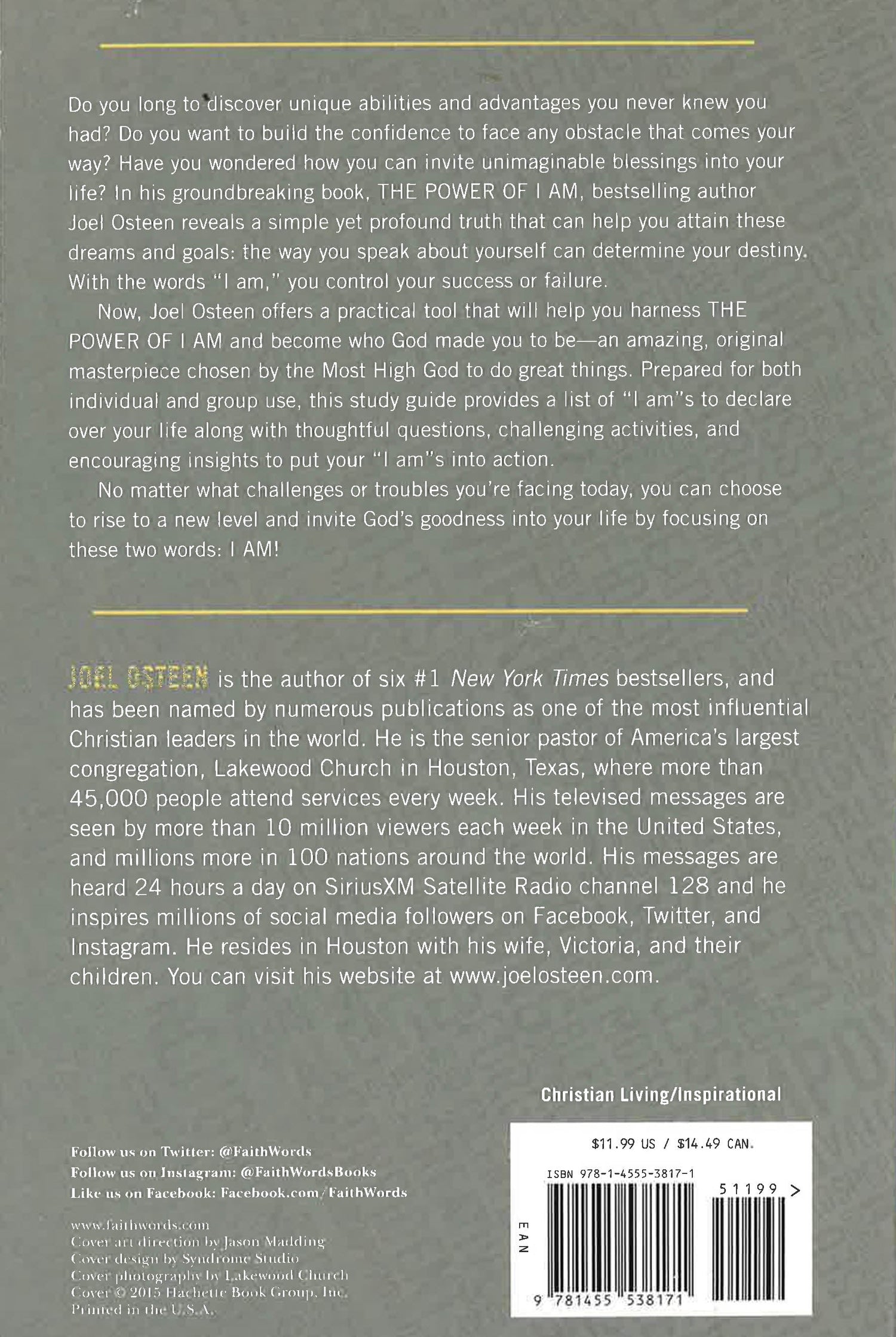 Based on Joel Osteen's book, The Power of I Am, this study guide presents intriguing questions, challenging activities, and encouraging insights that will inspire you to use two simple words -- I AM -- to start living your best life. Designed for both individual and group use, this interactive book will guide you to strengthen your faith and grow your self-assurance to experience amazing breakthroughs. With Joel Osteen as your personal guide, learn to invite the right things into your life. Once you begin to harness The Power of I Am, you can redirect your life's course to a path of confidence and success.