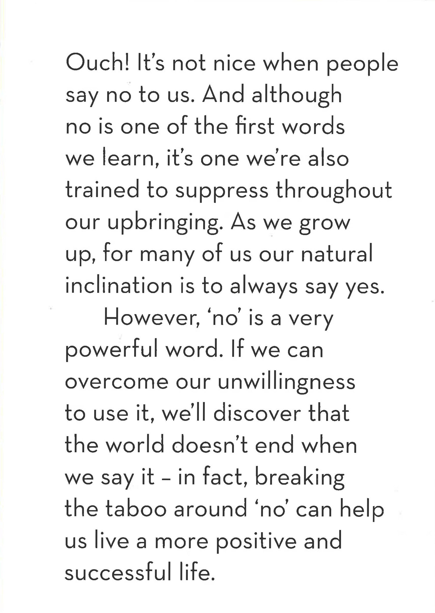 No more confidence knocks, no more overwhelming workloads and no more hesitation. By using this singleword and canny bible you will break the taboo that surrounds 'no' and come to understand your own needs.