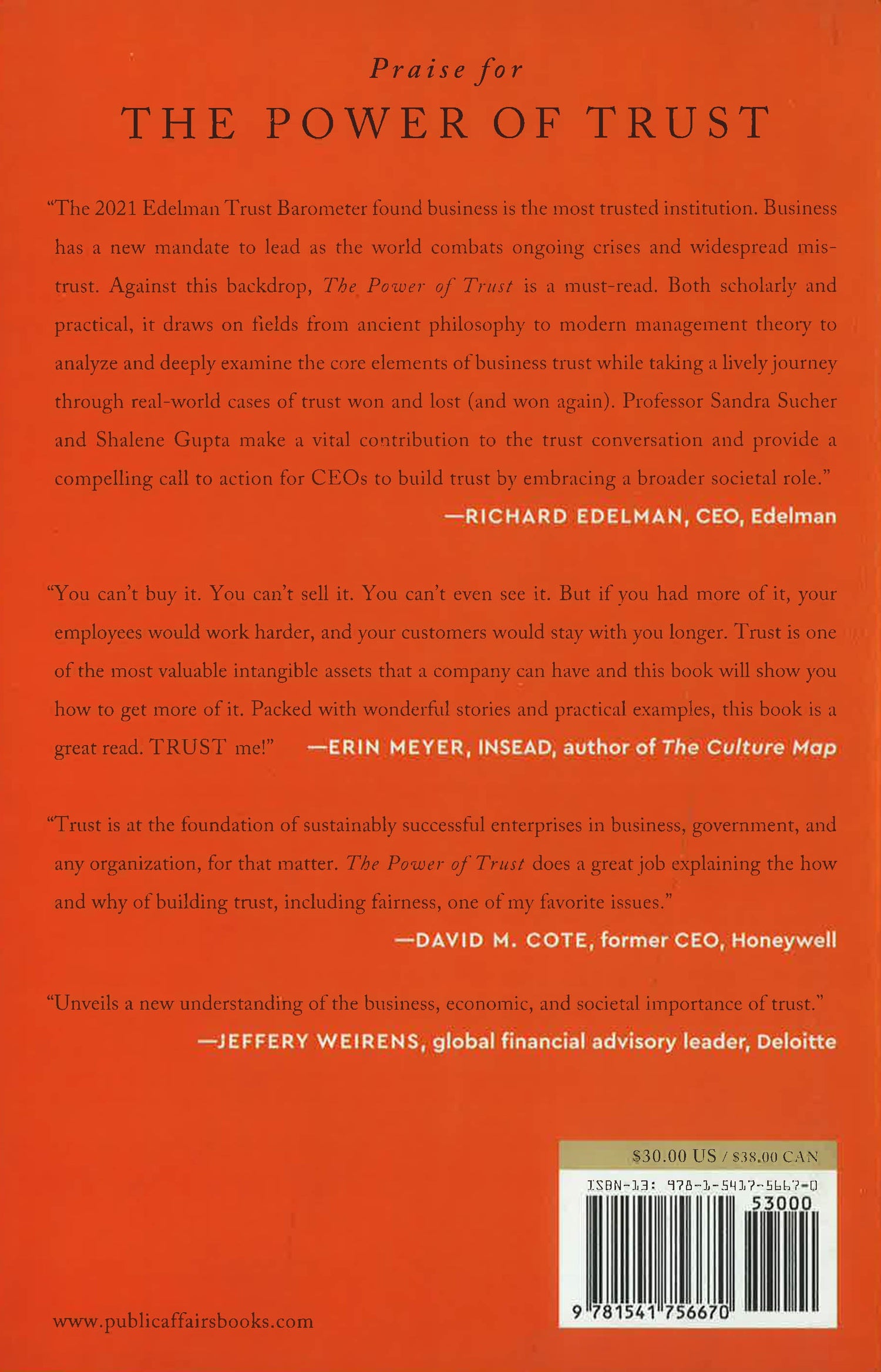 Trust is the most powerful force underlying the success of every business. Yet it can be shattered in an instant, with a devastating impact on a company's market cap and reputation. How to build and sustain trust requires fresh insight into why customers, employees, community members, and investors decide whether an organization can be trusted.