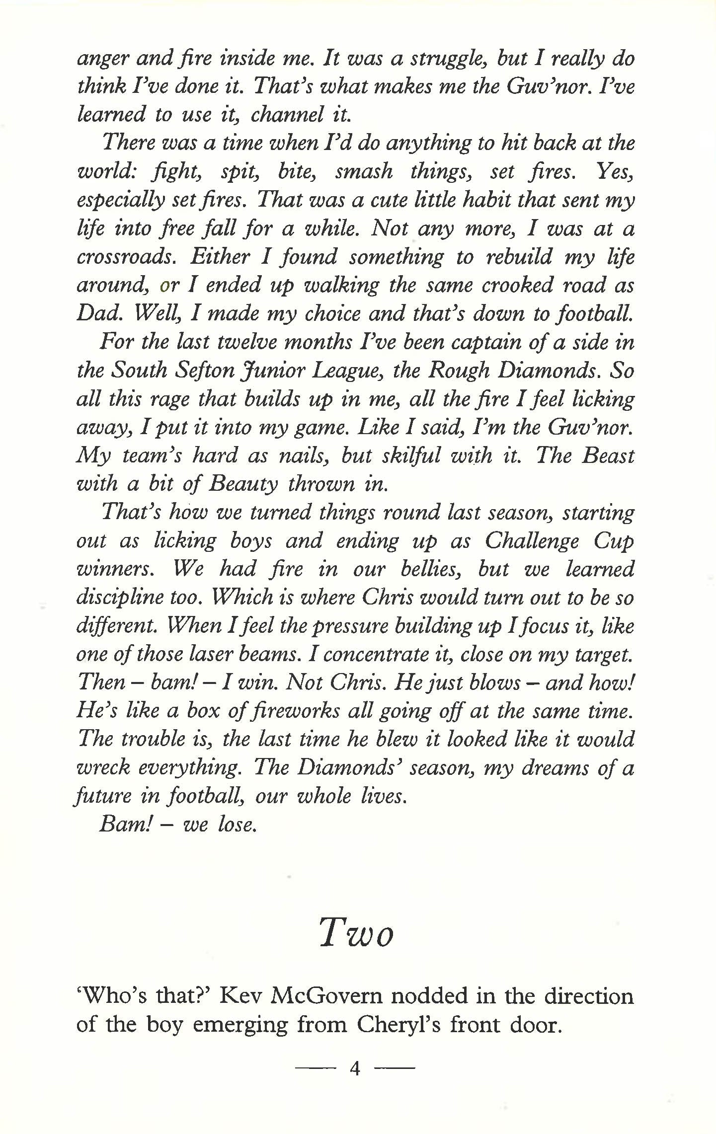 Kev doesn't make any allowances. That goes for the new boy Chris Power who's just signed up with the Diamonds. Can he earn a place in their affections when he's living in achildren's home and trying to make sense of what's happened in his life...?