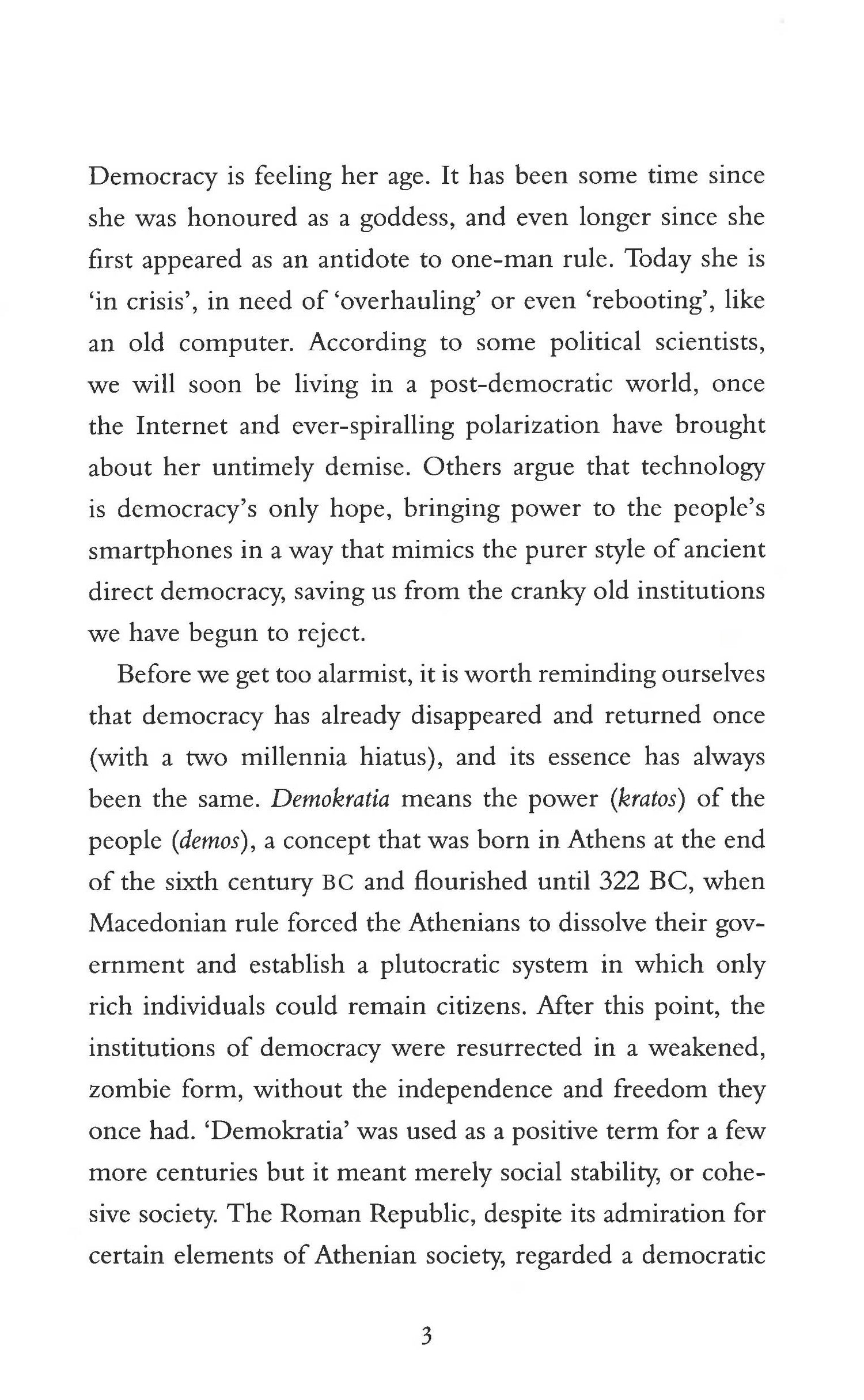 DEMOCRACY WAS BORN IN ATHENS. FROM ITS FOUNDING MYTHS TO ITS GOLDEN AGE AND ITS CHAOTIC DOWNFALL, IT'S RICH WITH LESSONS FOR OUR OWN TIMES.'Timely and fascinating' Robin Lane FoxWhy did vital civic engagement and fair debate descend into populism and paralysis? Can we compare the demagogue Cleon to President Trump, the Athenian Empire to modern America, or the stubborn island of Melos to Brexit Britain? How did a second referendum save the Athenians from a bloodthirsty decision? Who were the last defenders of democracy in the changing, globalised world of the 4th Century BC, and how do we unconsciously echo them today?With verve and acuity, the heroics and the critics of Athenian democracy are brought to bear on today's politics, revealing in all its glories and its flaws the system that still survives to execute the power of the people.
