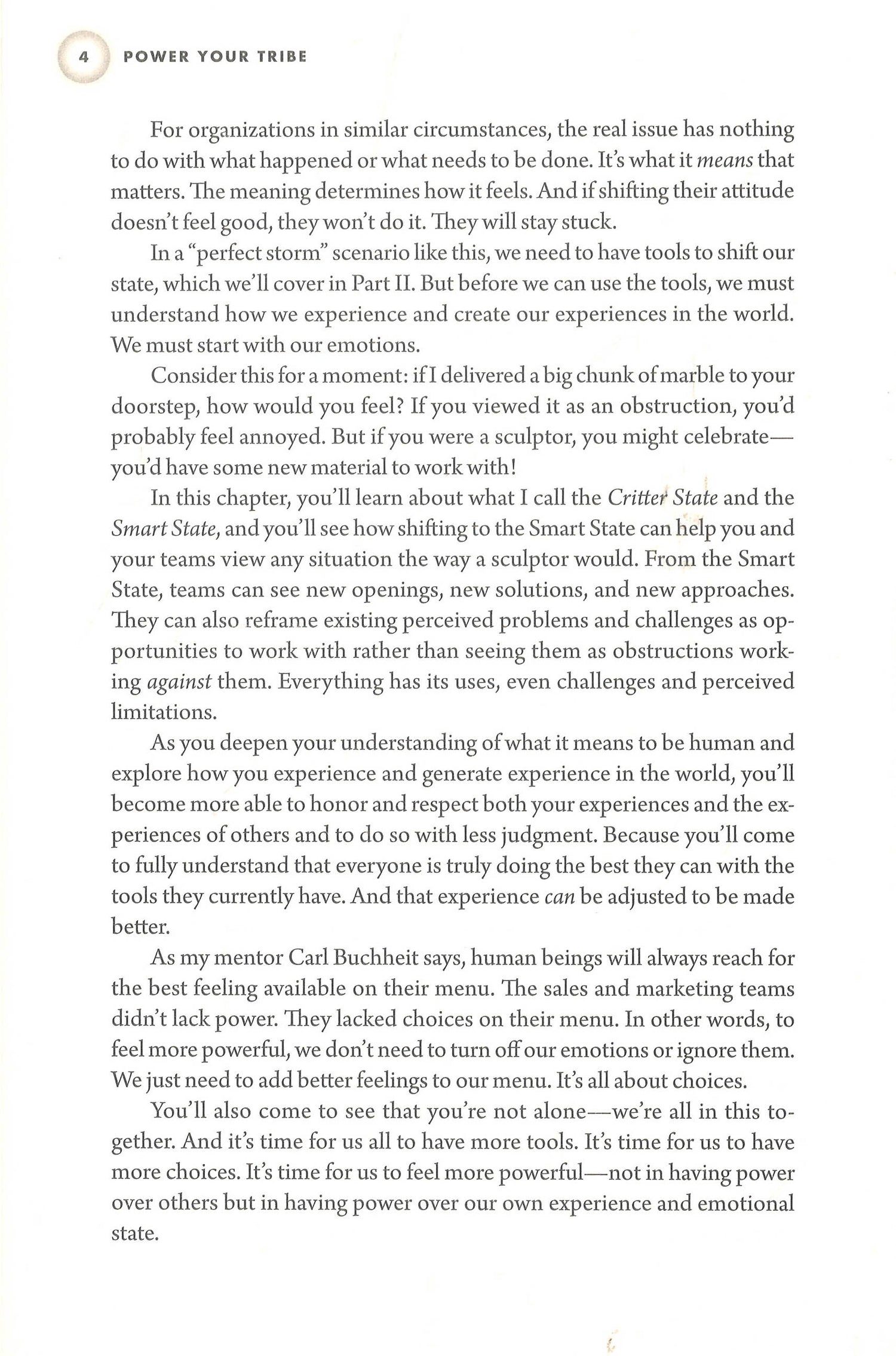 WALL STREET JOURNAL AND USA TODAY BESTSELLERIs your team thriving in a world of relentless and rapid change?From the New York Times bestselling author of SmartTribes and Rules for Renegades comes a potent set of neuroscience-based tools to empower your team in uncertain times.Whether it's diminished sales, increased competition, or corporate restructuring, change is a natural part of doing business in today's high-speed, information-overload, instant-response environment. But inherent in human nature is resistance to change-a basic emotional response that is well-documented by neuroscience. In this groundbreaking guide, top leadership consultant and employee engagement expert Christine Comaford shows you how to bring your tribe together to tackle any challenge head-on. Using her simple, proven strategies, you'll be able to:* Meet the demands of changing markets, customers, and competitors* Adapt to new management, restructuring, and other corporate shakeups* Spark innovation and teamwork in the workplace-and keep it burning* Empower your people to embrace change as a new opportunity for growthFilled with case studies and all-too-familiar examples, this book will enable you to release resistance to change, build more emotionally agile teams, and mobilize the entire organization quickly and efficiently toward a clear and common goal. By training and empowering your team members to shift their emotional states-and see the positive potential of change-you can lead your tribe through any challenge and ensure success for years to come.