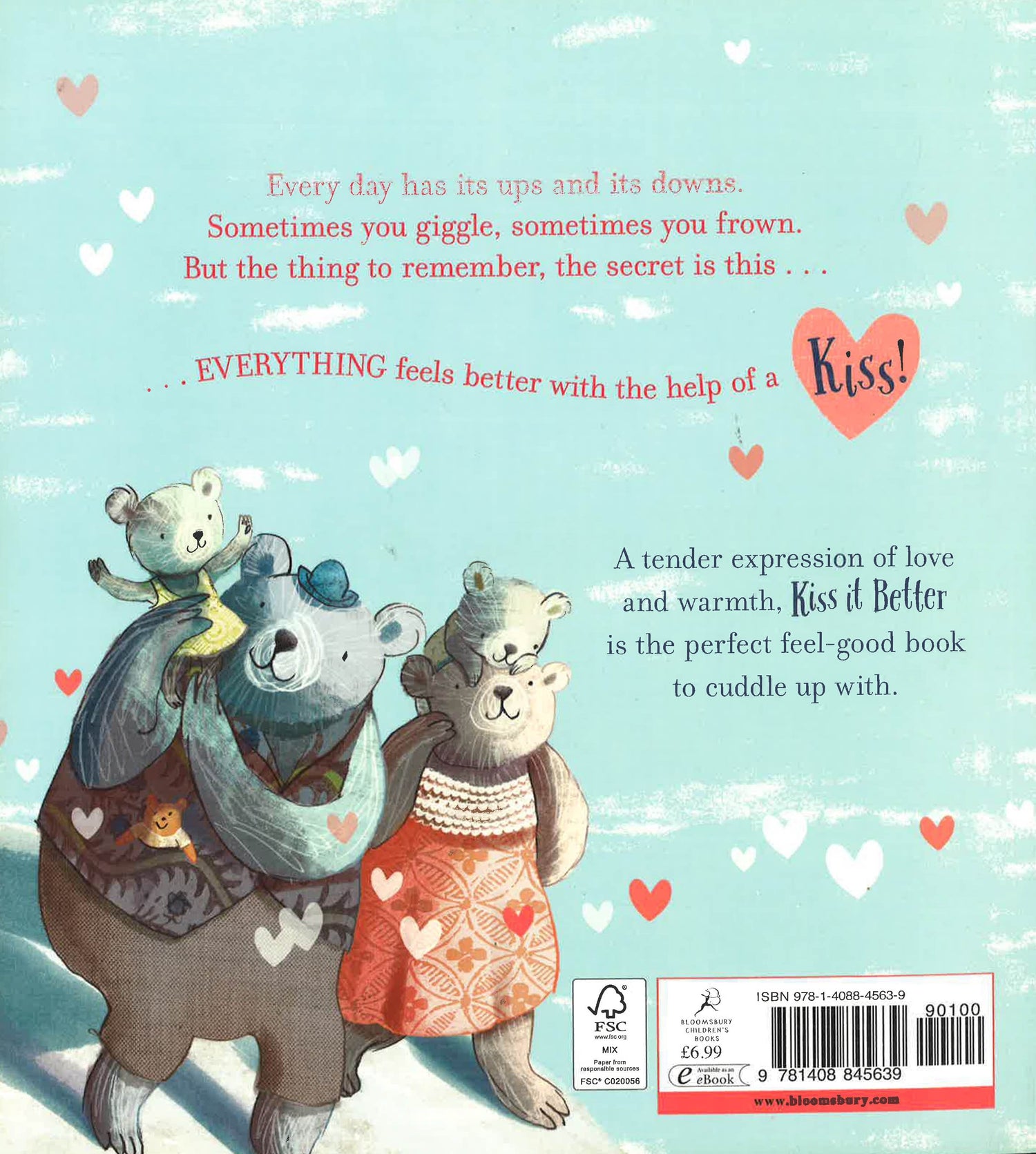 Every day has its ups and downs Sometimes you giggle, sometimes you frown. But the thing to remember, the secret, is this . . . Everything feels better with the help of a KISS. If you've scraped your knee, or fallen out with your best friend, a kiss can make everything better. And kisses aren't just for children, they're for grown-ups too. So the next time you see someone you love feeling down in the dumps, just remember: a kiss is the very best gift of all! A tender expression of love, Kiss It Better is the perfect gift. Great for fans of Guess How Much I Love You.