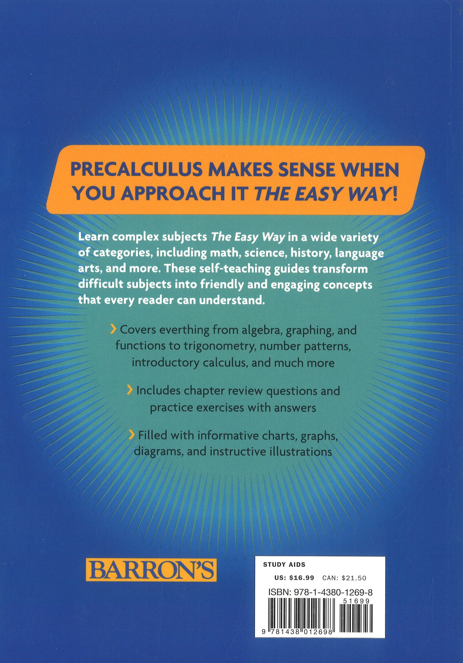 A self-teaching guide for students, Precalculus: The Easy Way provides easy-to-follow lessons with comprehensive review and practice.
