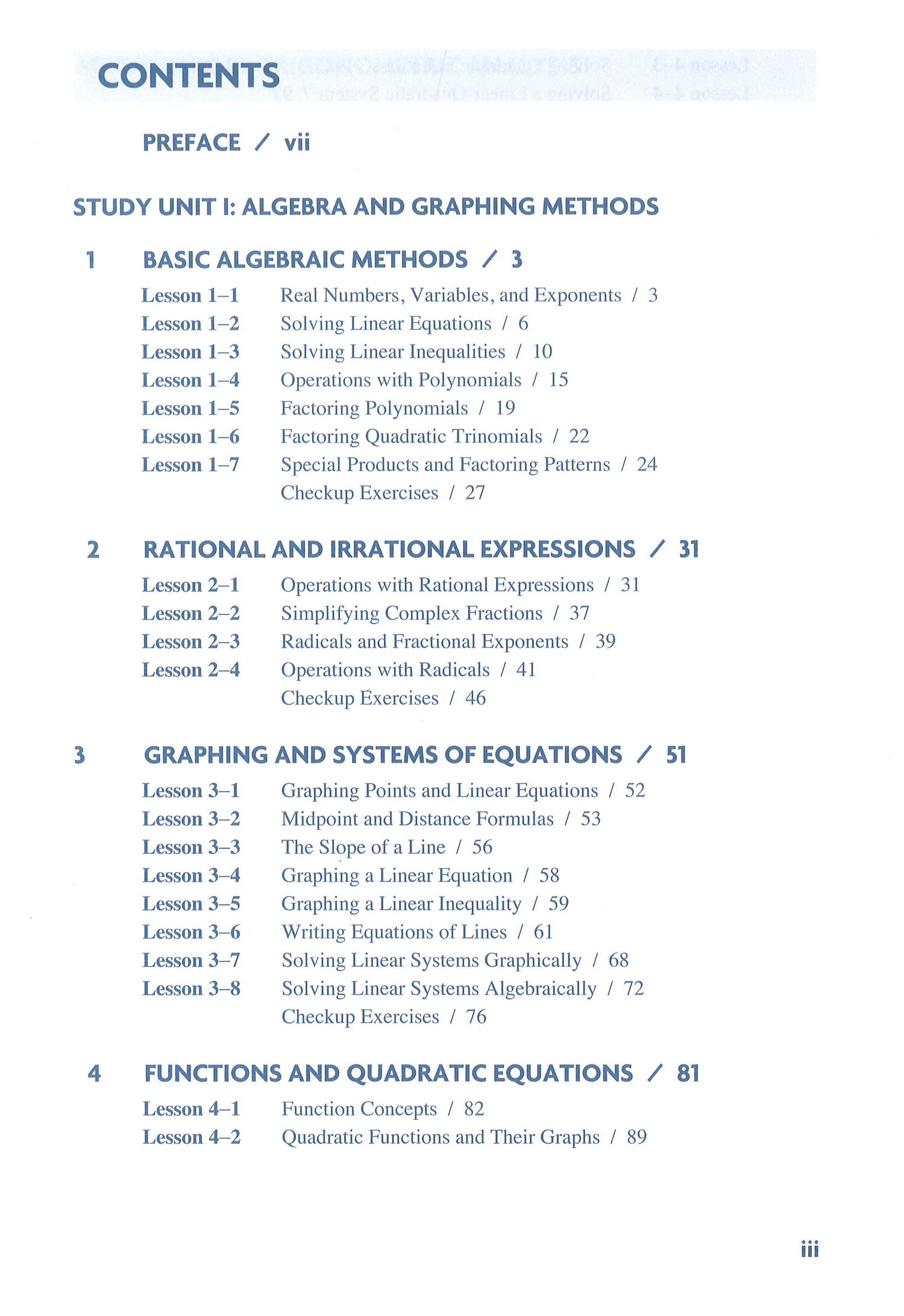 Algebraic MethodsFunctions and GraphsComplex NumbersPolynomial and Rational FunctionsCalculus Preview