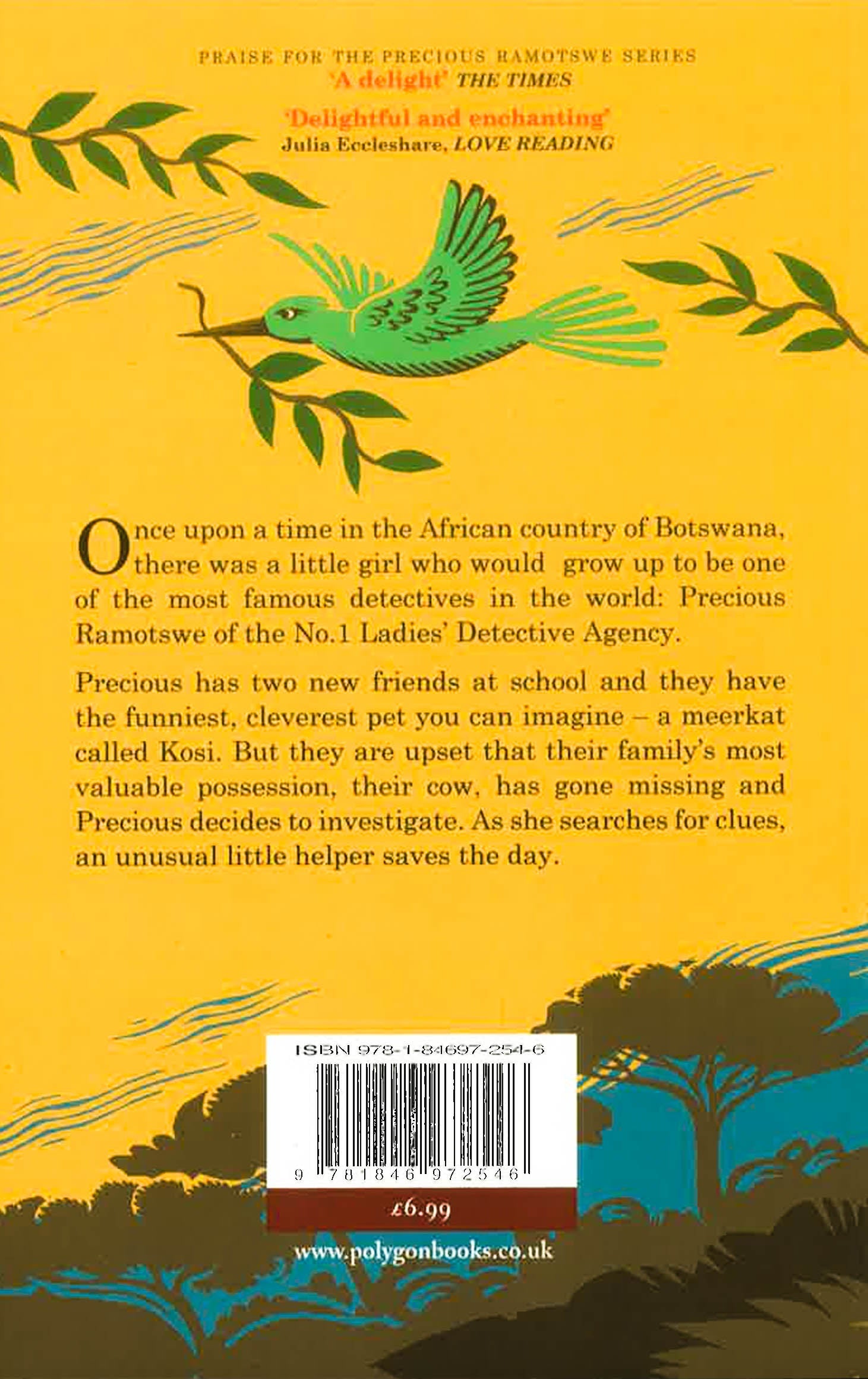 Once upon a time in Botswana in Africa there was a little girl who would later grow up to be a famous detective: Precious Ramotswe of the No. 1 Ladies' Detective Agency. Having already cracked the case of the missing cakes at school, she now has a new mystery to solve. Precious Ramotswe has two new friends at school and they have the funniest and most resourceful pet you can imagine. But they are upset that their family's most valuable possession, their cow, has gone missing. Precious has a plan to find the missing animal but she needs the help of another in her search. Will she succeed and what obstacles will she face on her path? Find out as Alexander McCall Smith tells the story of 'Precious and the Mystery of Meerkat Hill'.